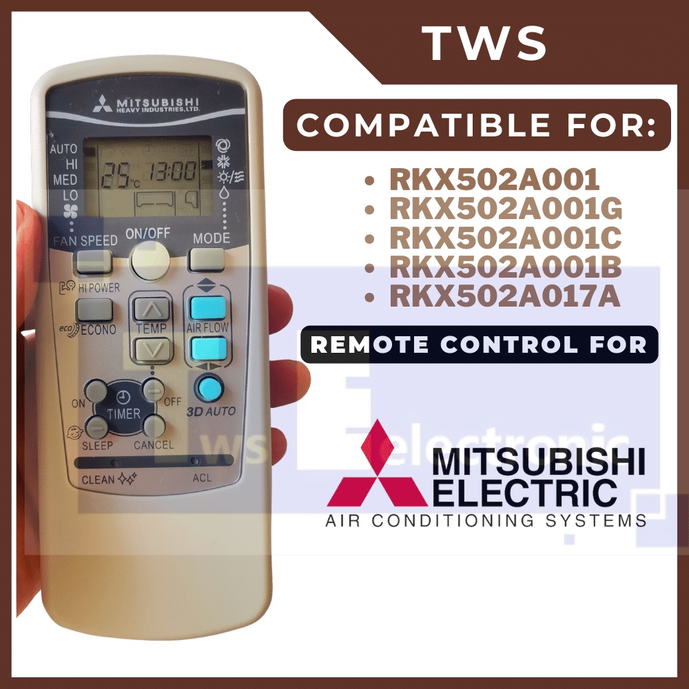 TWS MITSUBISHI AC REMOTE FOR (RKX502A001 RKX502A001G RKX502A001C RKX502A001B RKX502A017A)