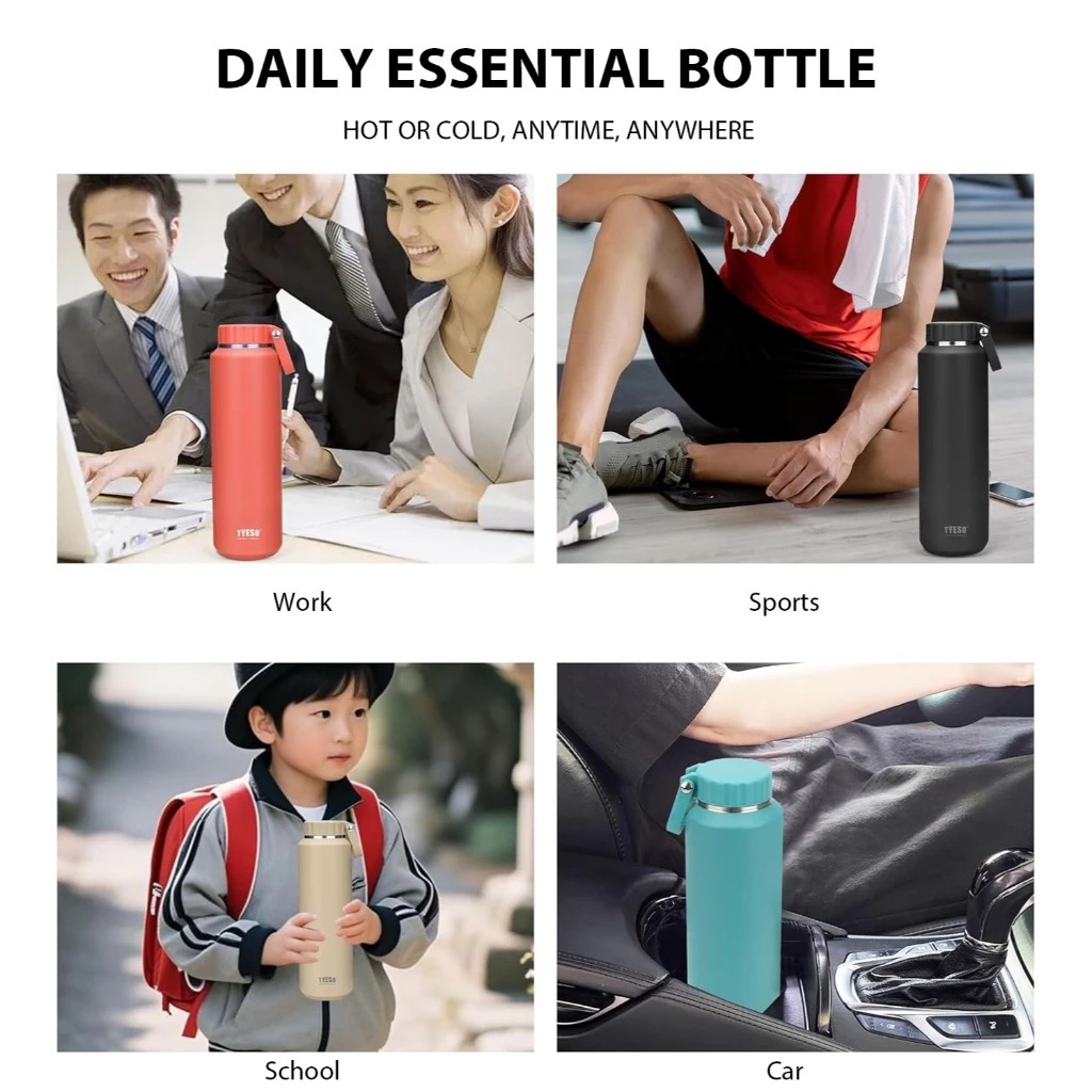 TYESO Vacuum Insulated Stainless Steel Water Bottle 500ml/710ml Thermos Flask Keep Hot & Cold With Handle TS-8755C/8756C