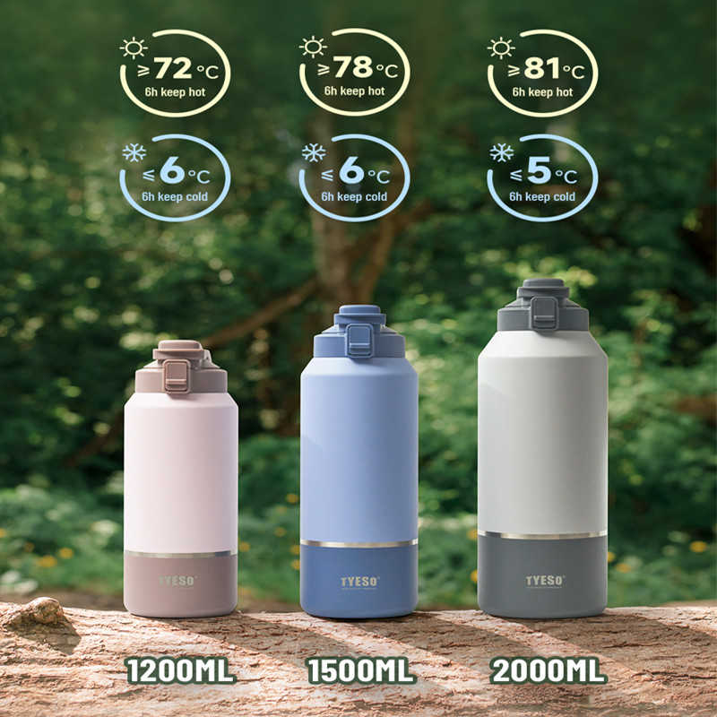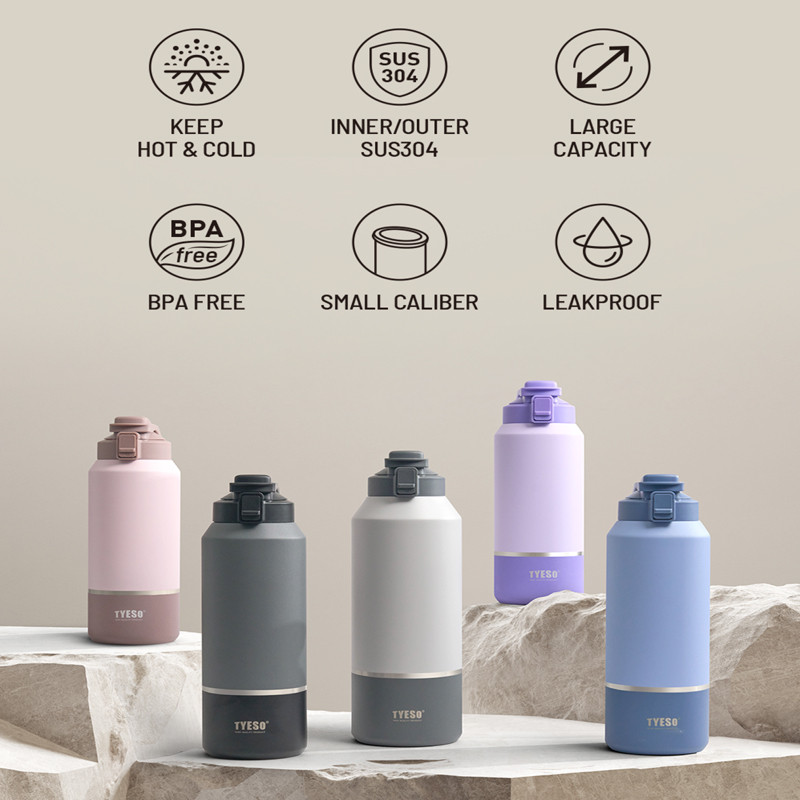 TYESO Vacuum Insulated Large Thermos Tumbler 1200/1500/2000ml Double Wall 304 Sport Bottle Botol Air TS-01013-TS-01015