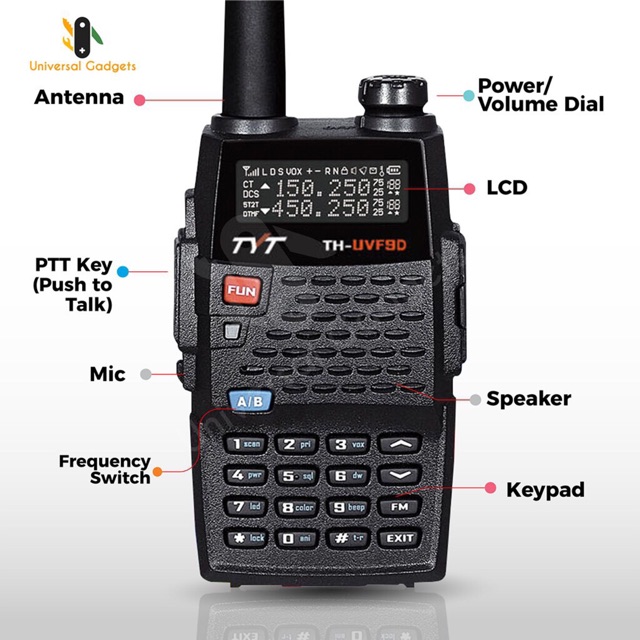 TYT UV-THF9D Quad Band Walkie-Talkie (Black LED Screen) with TYT Car Charger UVF9D F9D THUVF9D