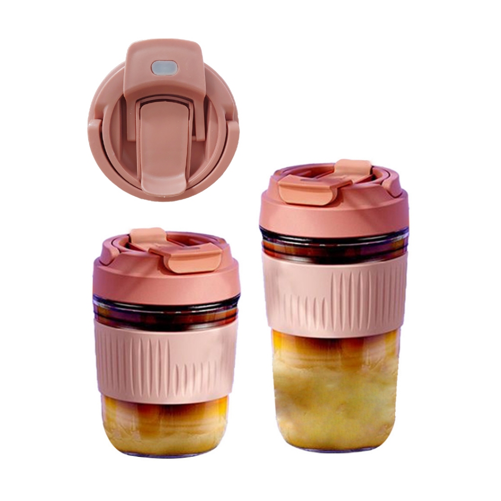 Mug 🥤 [350/450ml] Cawan Macaron Glass Mug Heat Resistant Glass Cup With Sealed Cover Milk Juice Coffee Glass Bottle XZTP