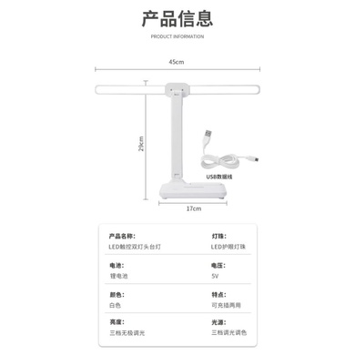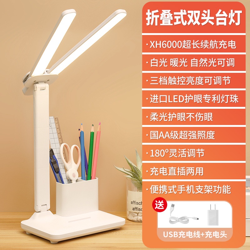 Table Lamp Double Head Touch Dimming Room Desk Lamp Office Lamp