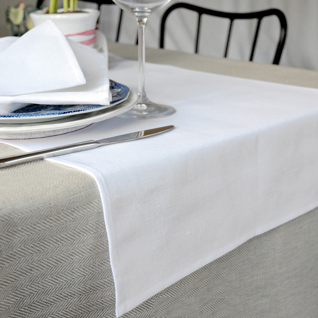 Table Runner - Plain White Cotton Fabric / Fancy Colored Dobby design - Dressing up your table.