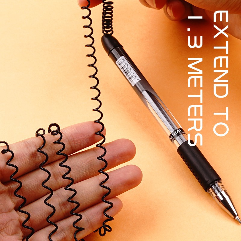 Table Top Pen, Black Counter Pen, Desk Table Pen with String Office Bank Stationery, Pen Meja 0.5mm