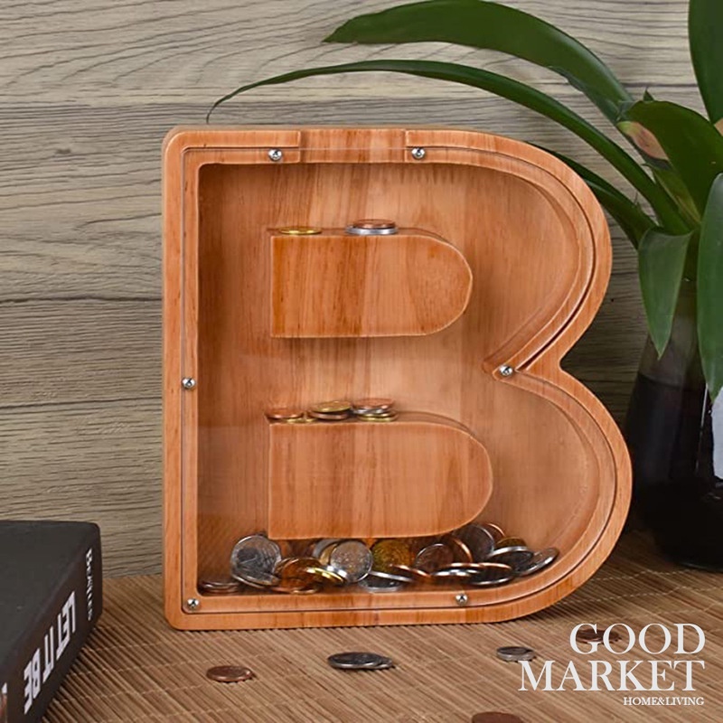 Tabung syiling gift coin box tabung duit Wooden Transparent English Alphabet Piggy Bank Coin Bank Money Saving Box Coins Jar Coins Storage Box Money Bucket Money Box Coin Box Surprise Birthday Gifts for Kids
