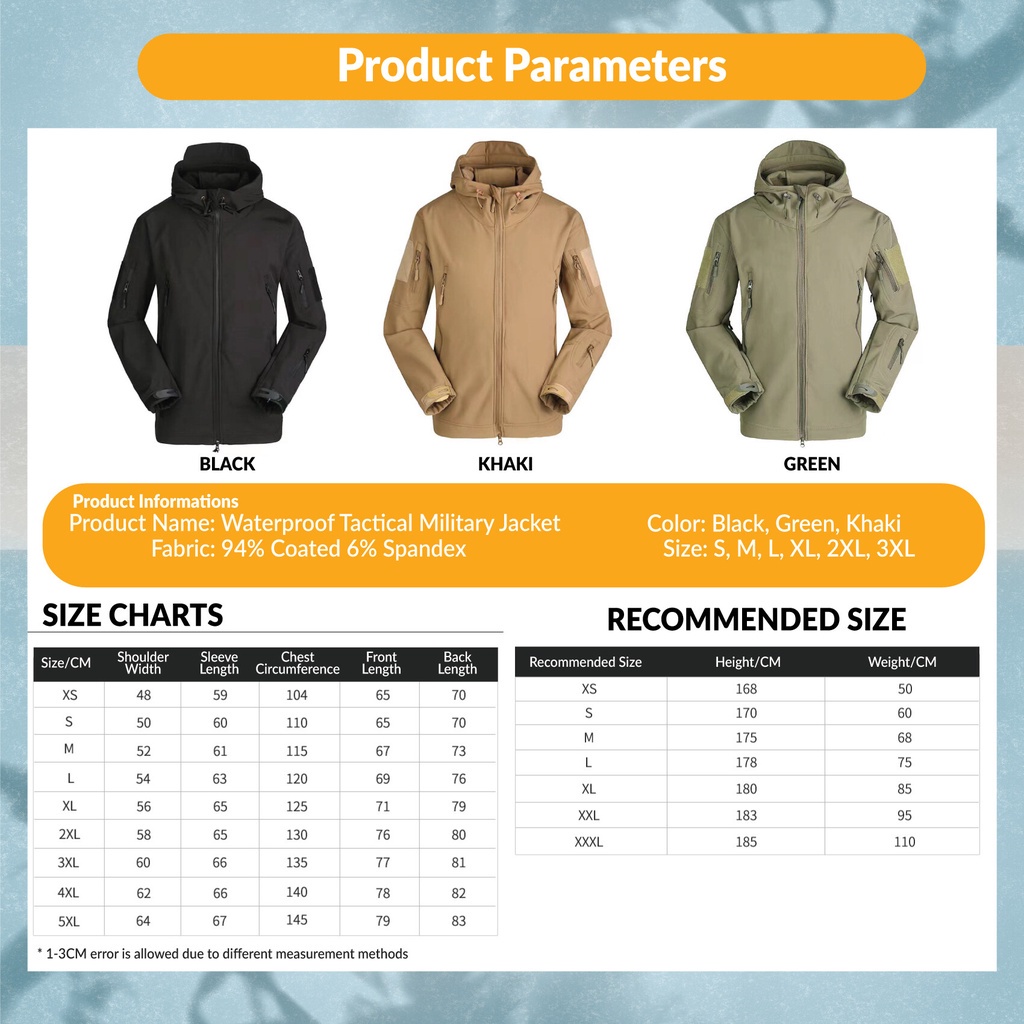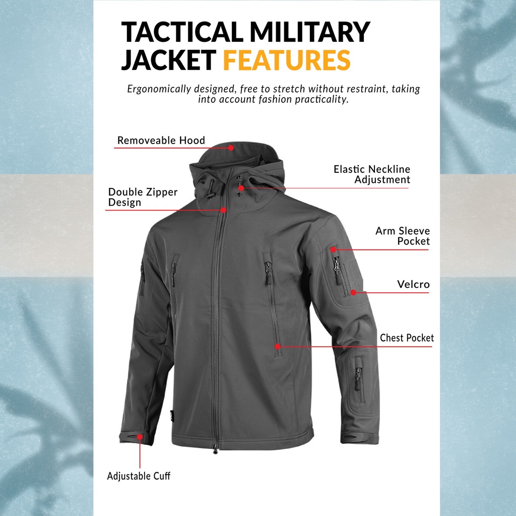 Tactical Jacket Waterproof Warm and Comfortable Hiking Army Windproof Hood Outdoor Fishing Soft Fabric Jacket Coat