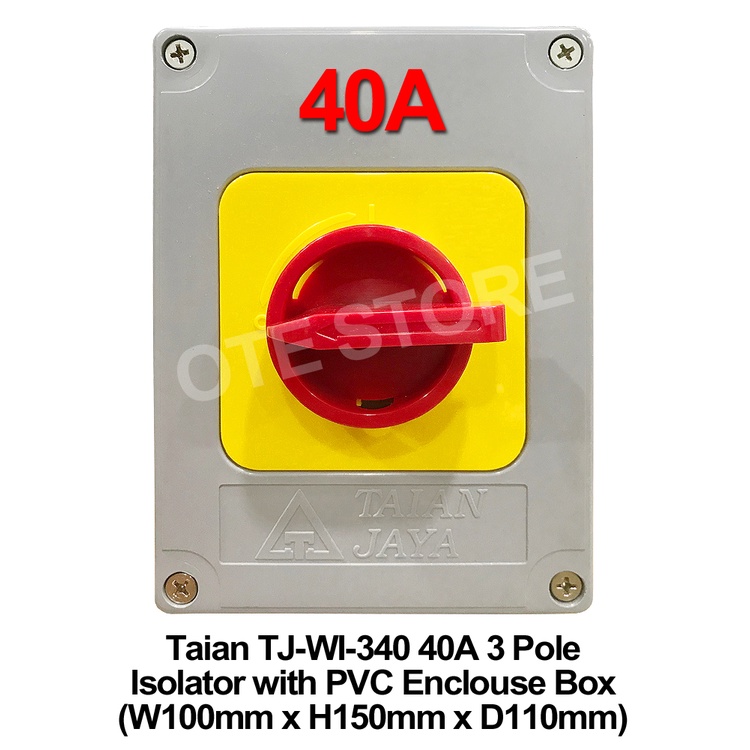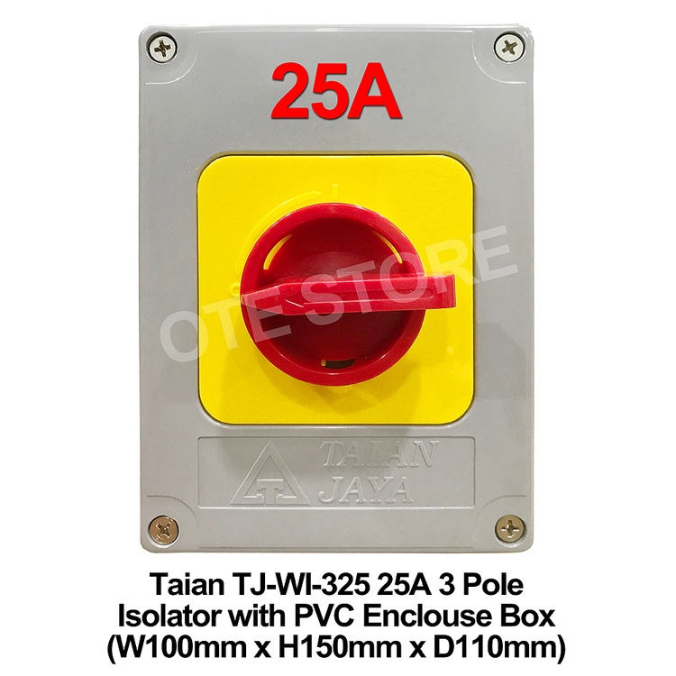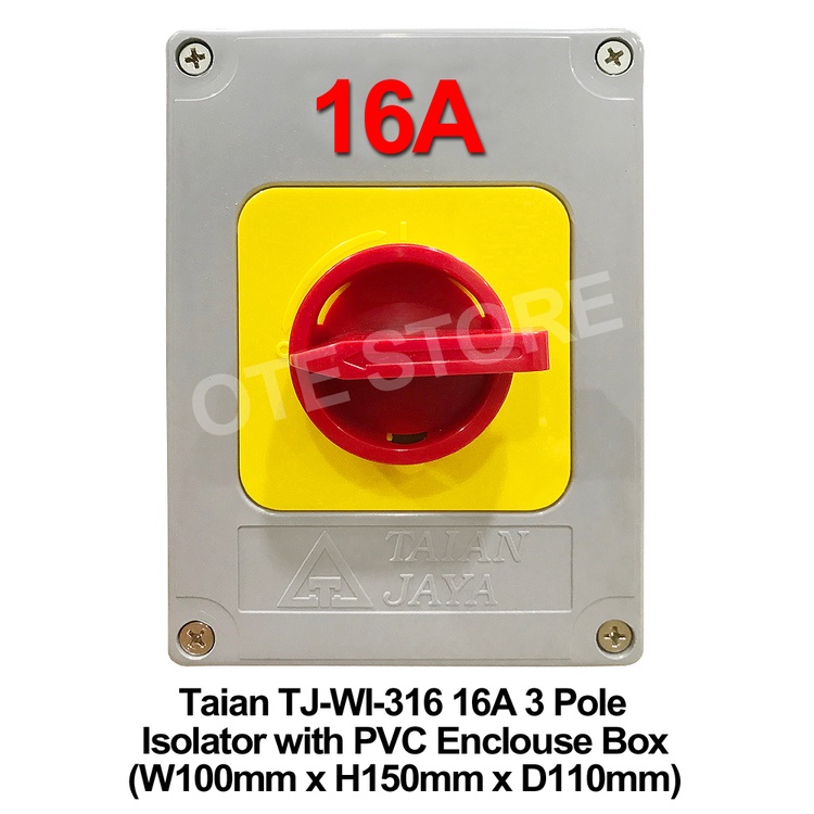 Taian TJ-WI Type 16A / 25A / 40A 3 Pole Weather Proof Isolator with PVC Enclosure Box (W100mm x H150mm x D105mm)