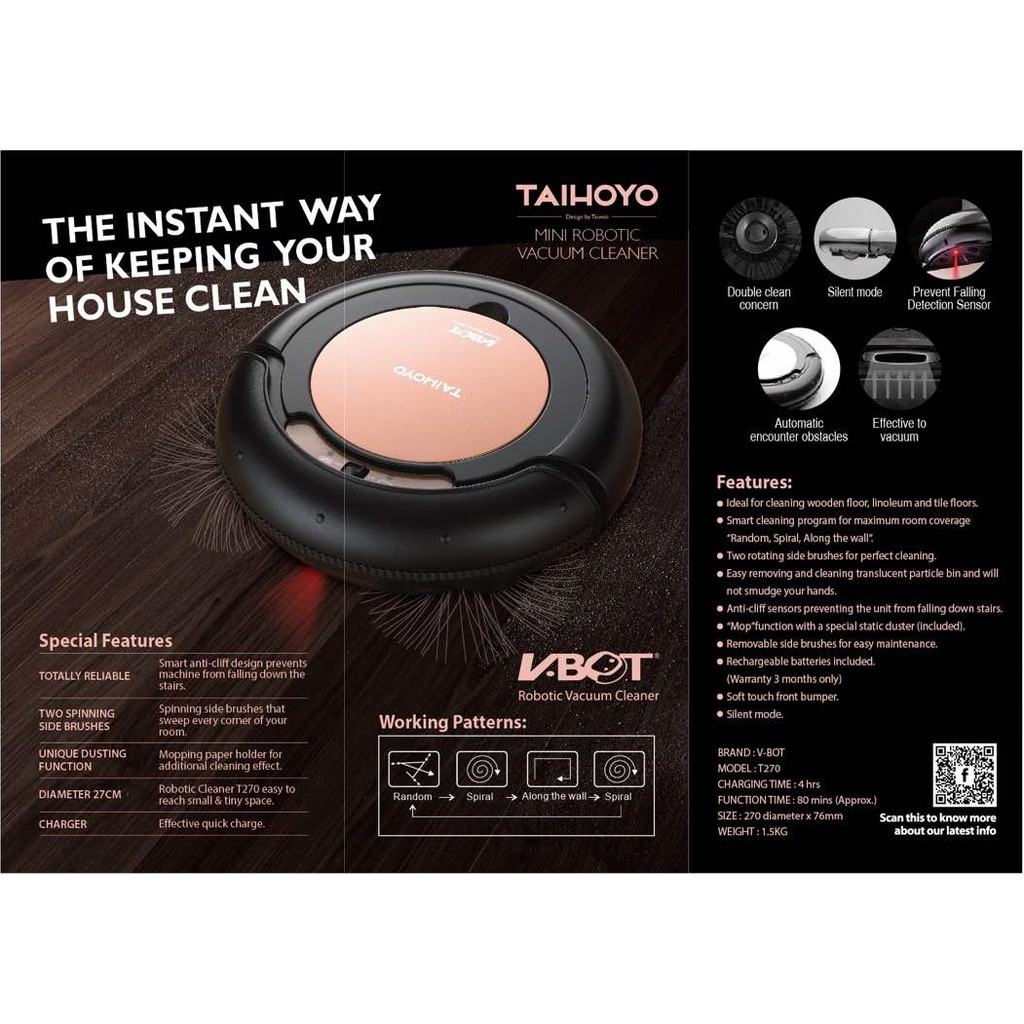 Taihoyo V-Bot Robotic Vacuum Cleaner T270(BG) 80 min