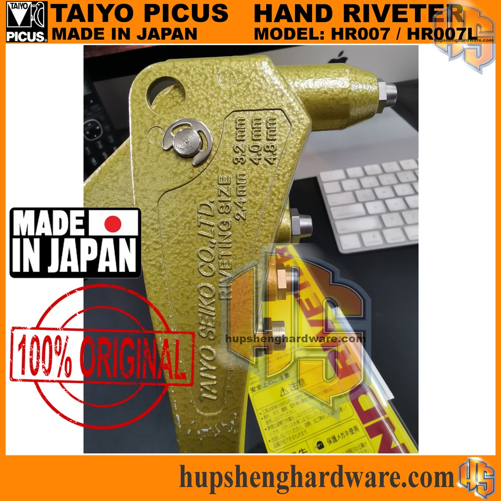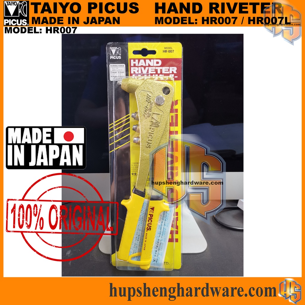Taiyo Picus Hand Riveter Rivet Gun Made in Japan 4 Sizes Blind Rivet 2.4, 3.2, 4.0, 4.8mm Picus HR007 Picus HR007L