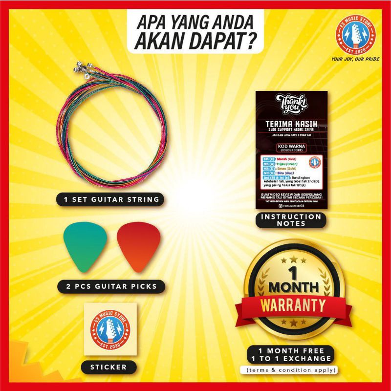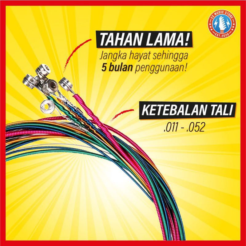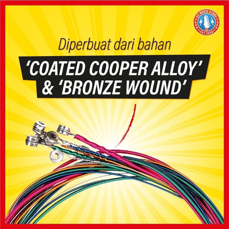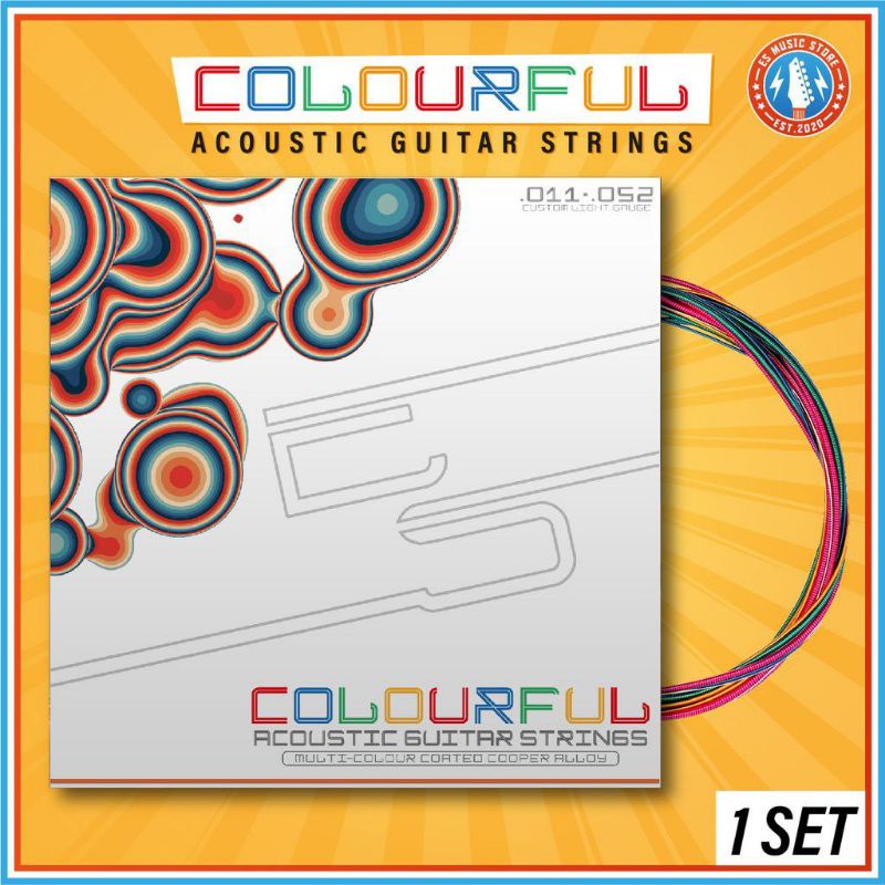 Tali Gitar Akustik Multicolour 1 set 6 Strings (Multicoloured Acoustic Guitar String Set)