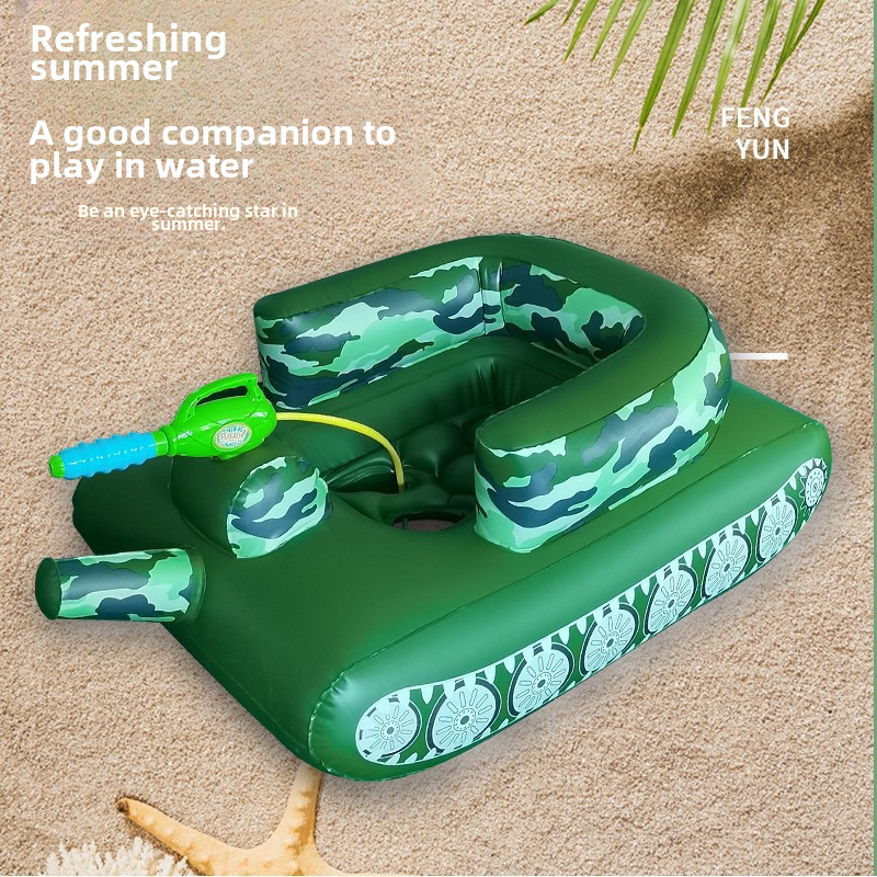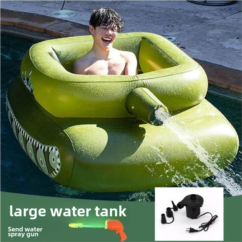 Tank Swimming Ring Inflatable Water Spray Floating Toy Boys Girls Children Adult Swimming Pool Paddling Hovercraft Floating Bed