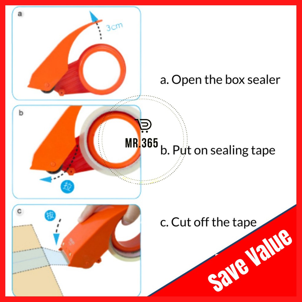 Tape Dispenser 48mm OPP Hand Box Pack Roller Cutter Metal Tape cutter PVC Tape Cutter Pemegang Tape