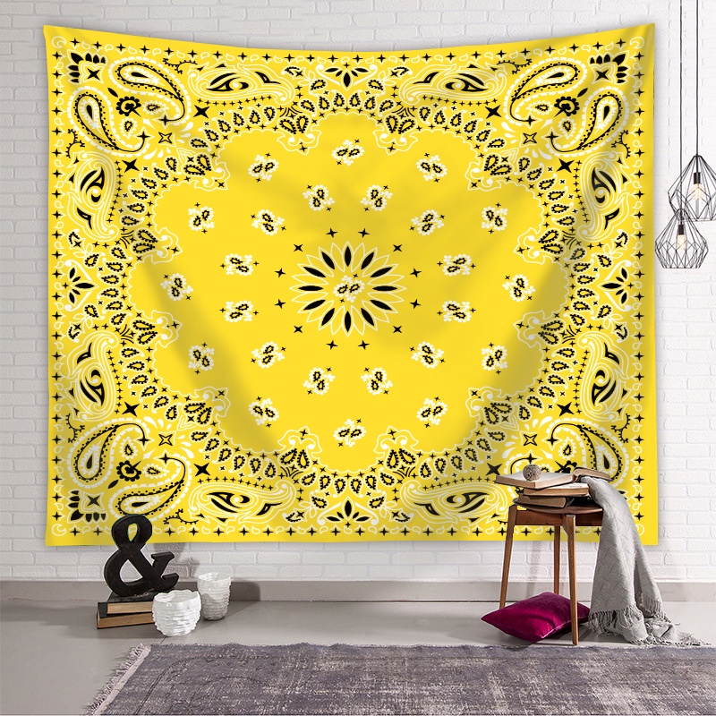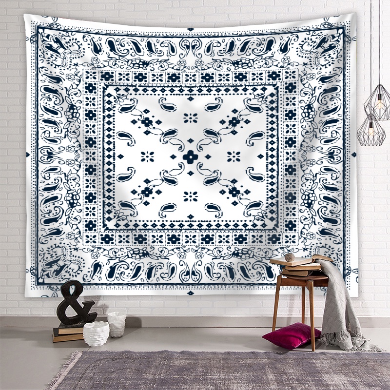 Tapestry with Clips Psychedelic Boho Ethnic Tribal Paisley Bandana Pattern Printed Polyester Tapestries Bedroom Sofa Dormitory Wall Hanging Tapestry Home Decor
