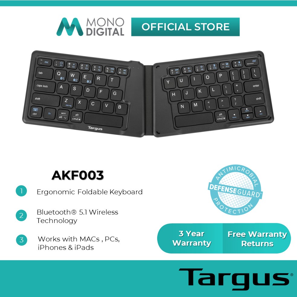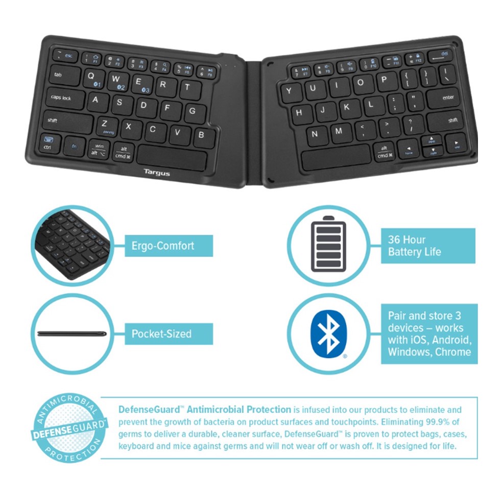 Targus Bluetooth Keyboard AKF003 Ergonomic Foldable Antimicrobial Keyboard (for iPad/Android/Windows)