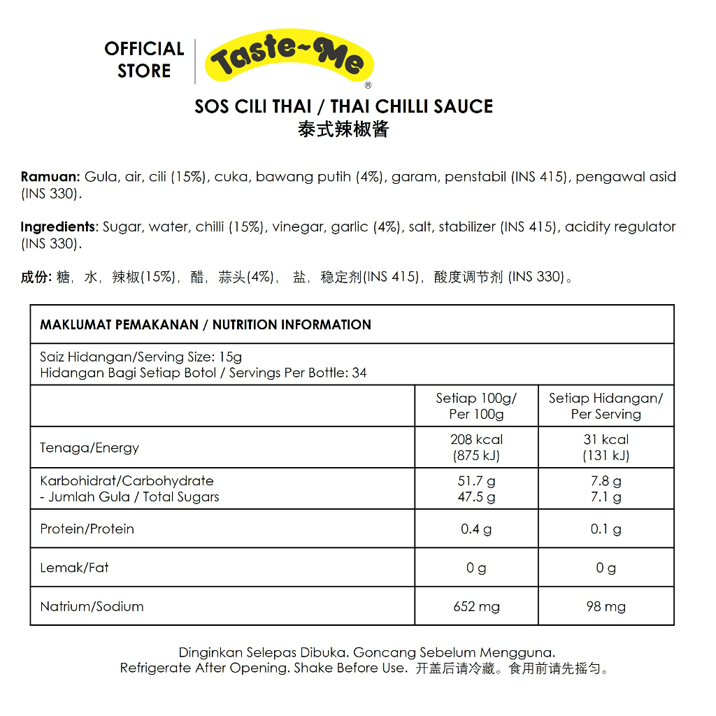 Taste-Me Thai Chilli Sauce 510g 泰式辣椒酱 Sos Cili Thai