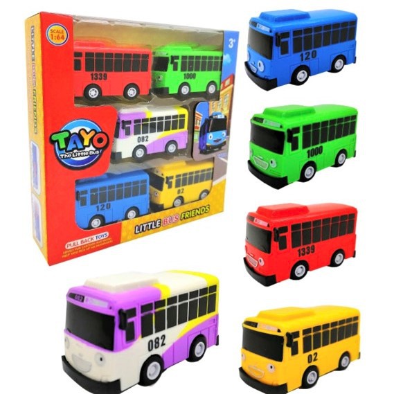 Tayo Bus Cartoon Pull Back TAYO Little Bus Toy 5IN1
