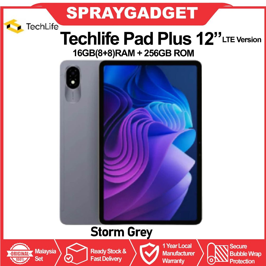 Techlife Pad Plus 12" LTE (16GB* RAM + 256GB ROM) 12" Large 2K Display l 8000mAh Massive Battery