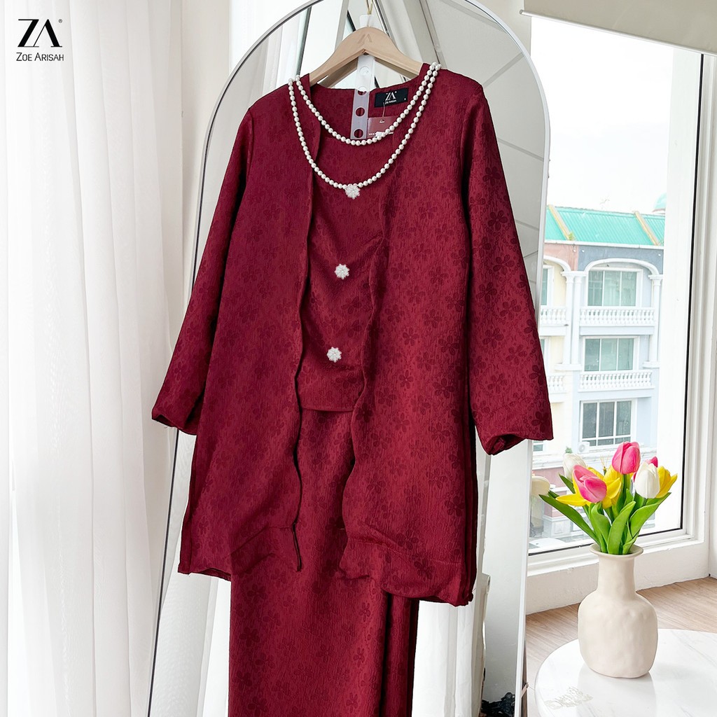 ZOE ARISAH Ruhayla Effani Kurung Kebarung Moden Premium Textured Scallop 2026 Baju Raya Rich Brown Teal Blue ZOE ARISSA