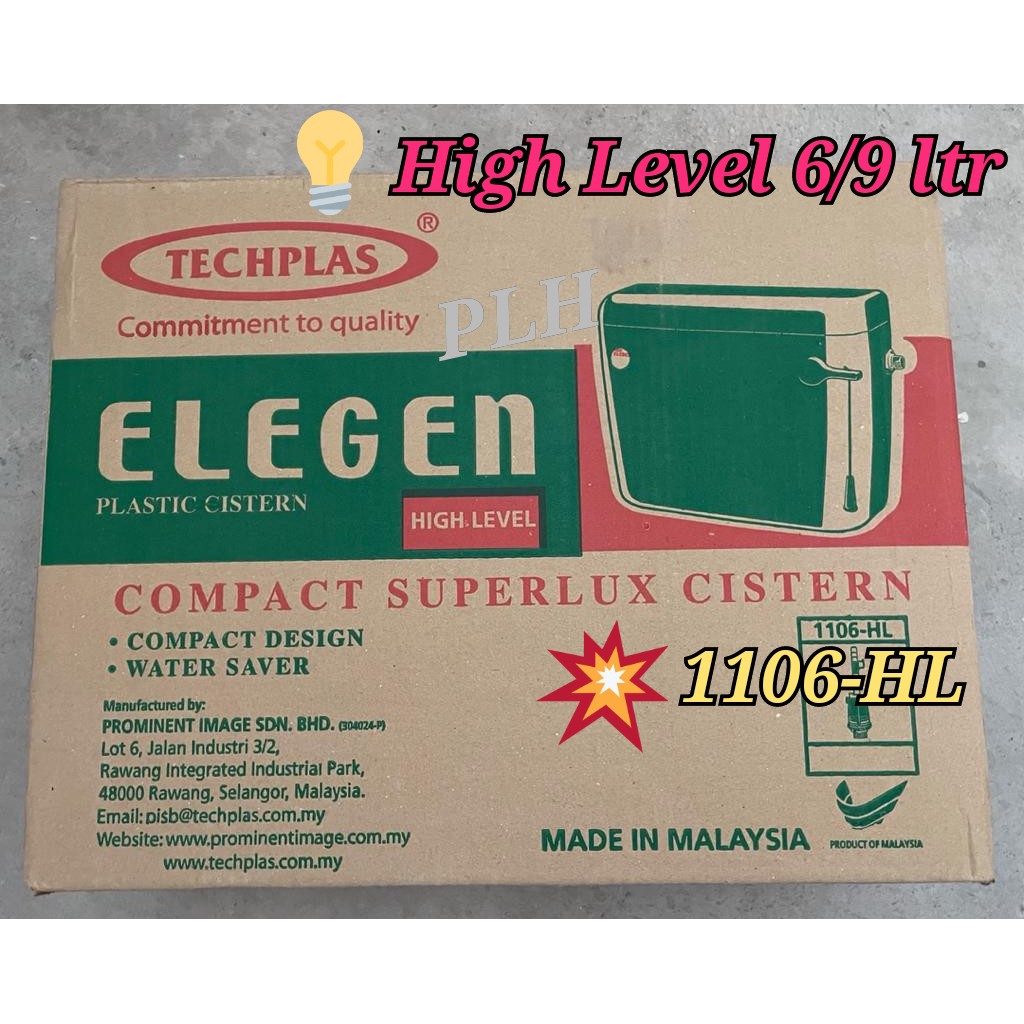 Techplas Elegen Plastic Cistern Tanki High Level 6/9Lt(WHITE)[1106-HL]