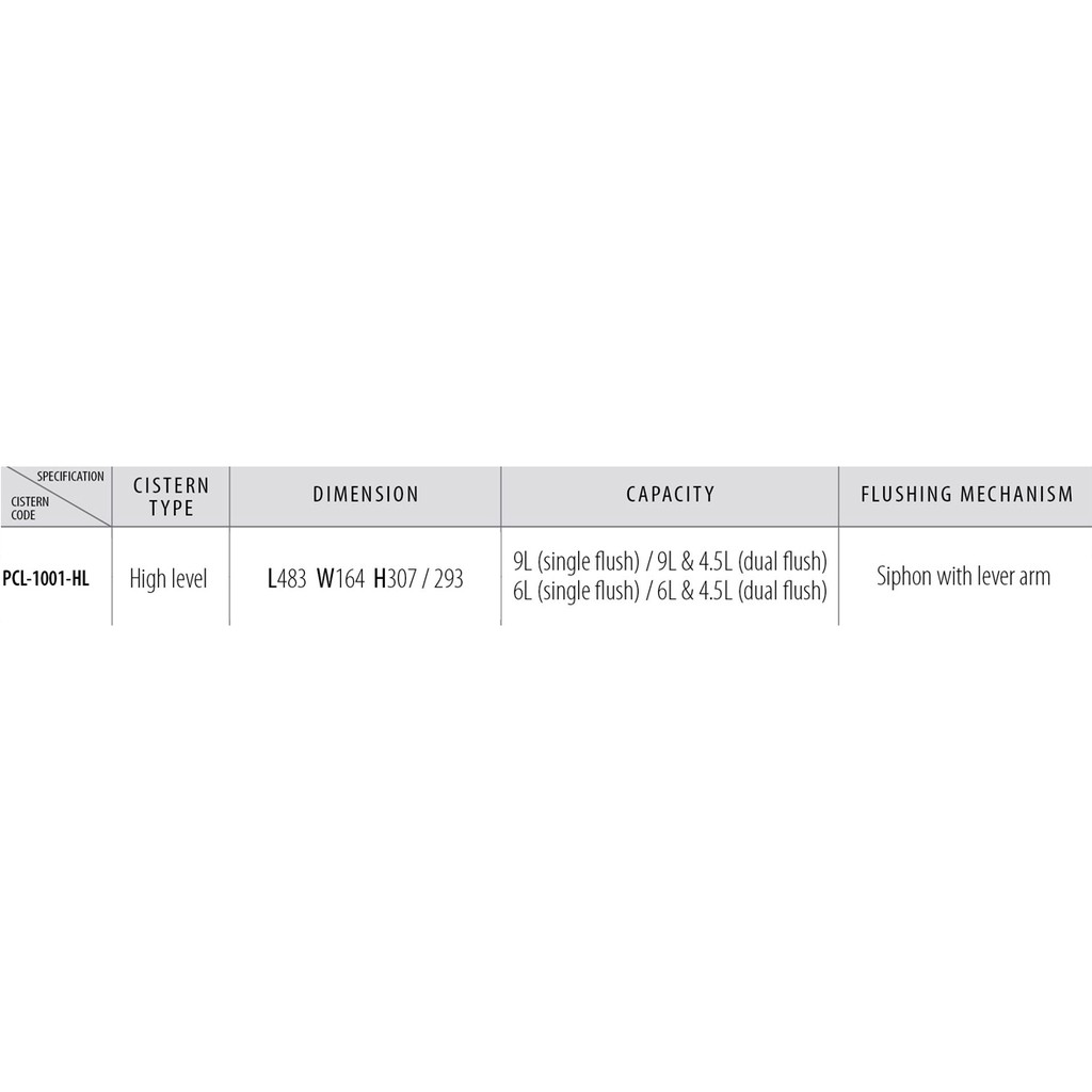 Techplas Plastic H/L Cistern 1001-HL (White & Colour)