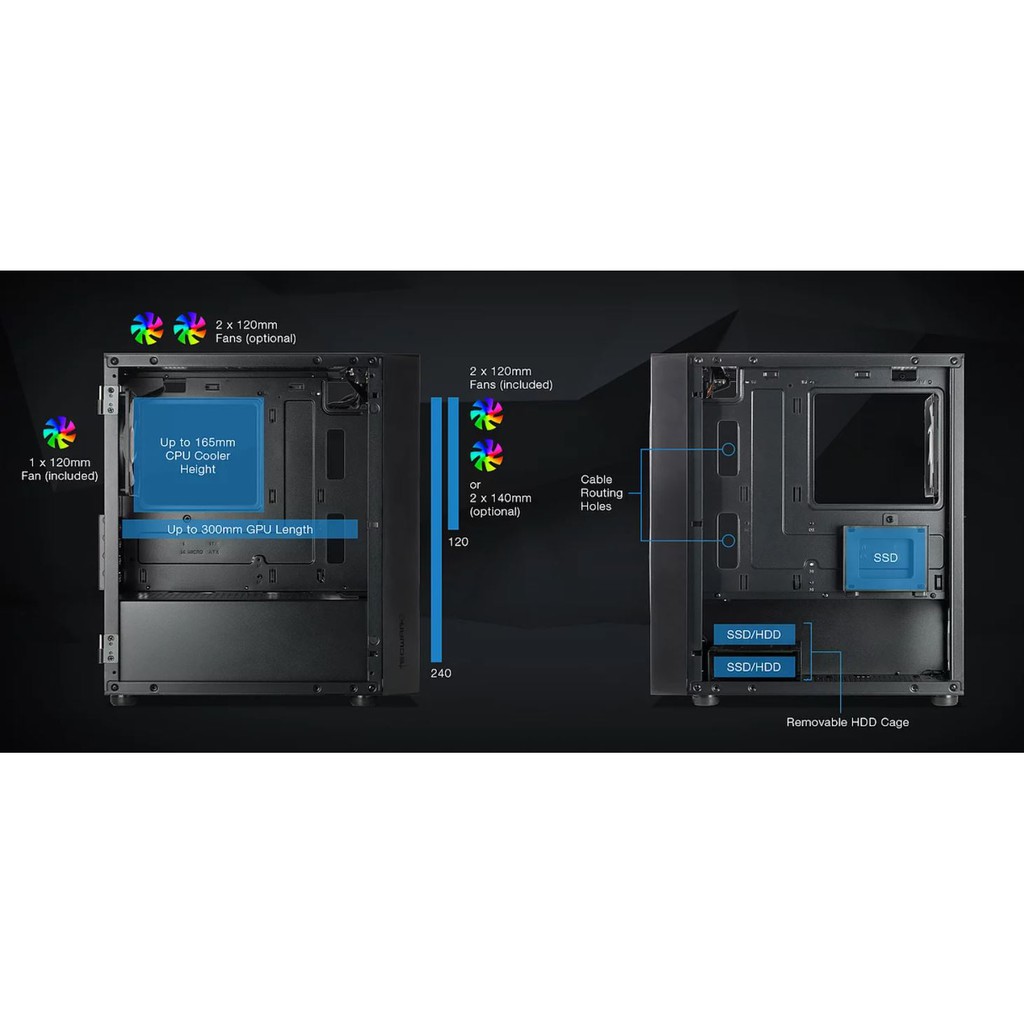 Tecware Forge M2 ARGB TG mATX Gaming Case - ARGB Black | ARGB White