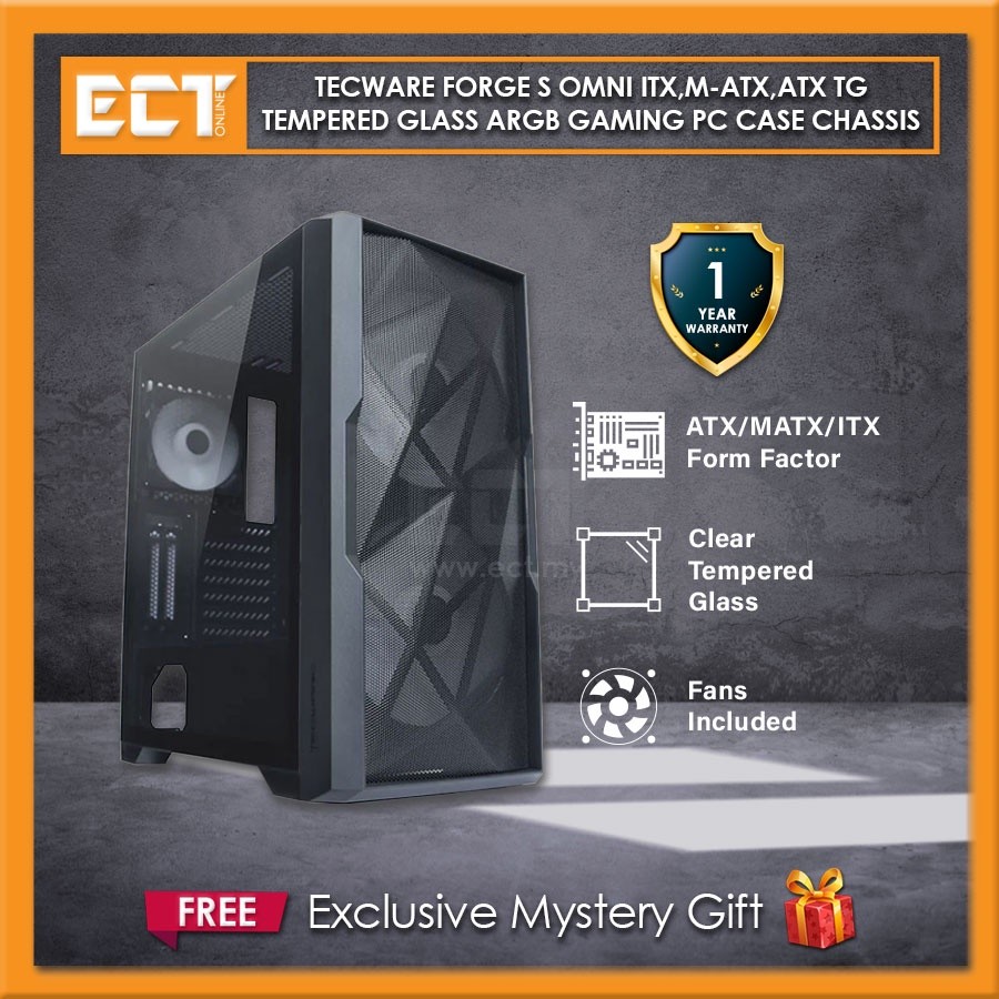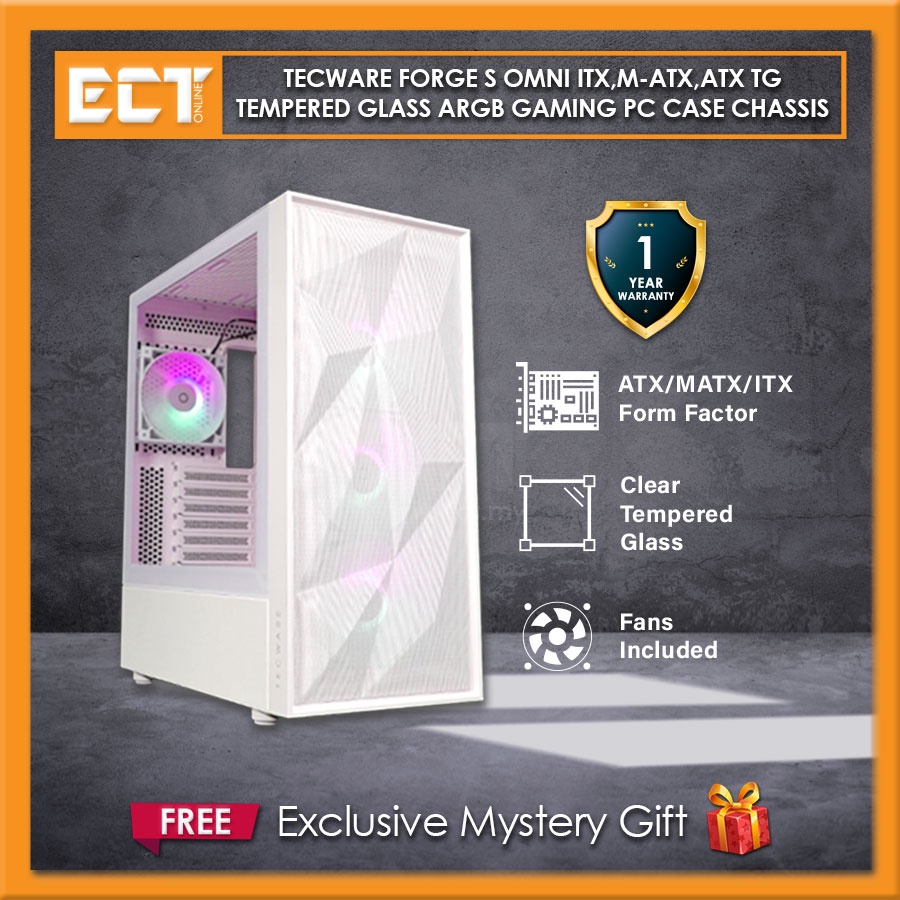 Tecware Forge S Omni ITX,M-ATX,ATX TG Tempered Glass ARGB Gaming PC Case Chassis - White/Black
