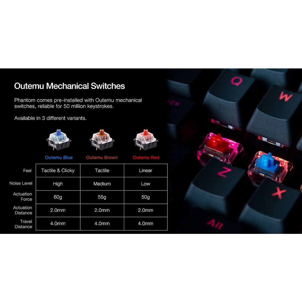 Tecware Phantom TKL RGB 2022 Mechanical Keyboard Tenkeyless (TWKB-P87ZO, Double Shot ABS,TKL 87 Keys, RGB Outemu Switch)