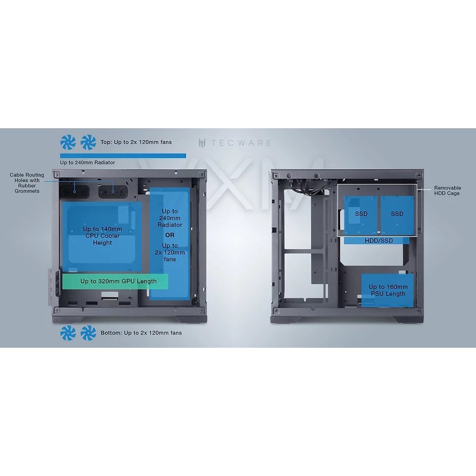 TECWARE VXM2 Dual Chamber ARGB MATX Gaming Case 3x ARGB Fans - [BLACK / WHITE]