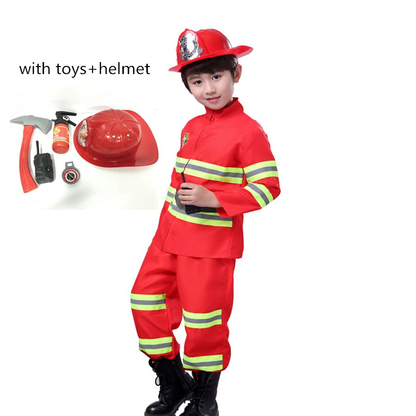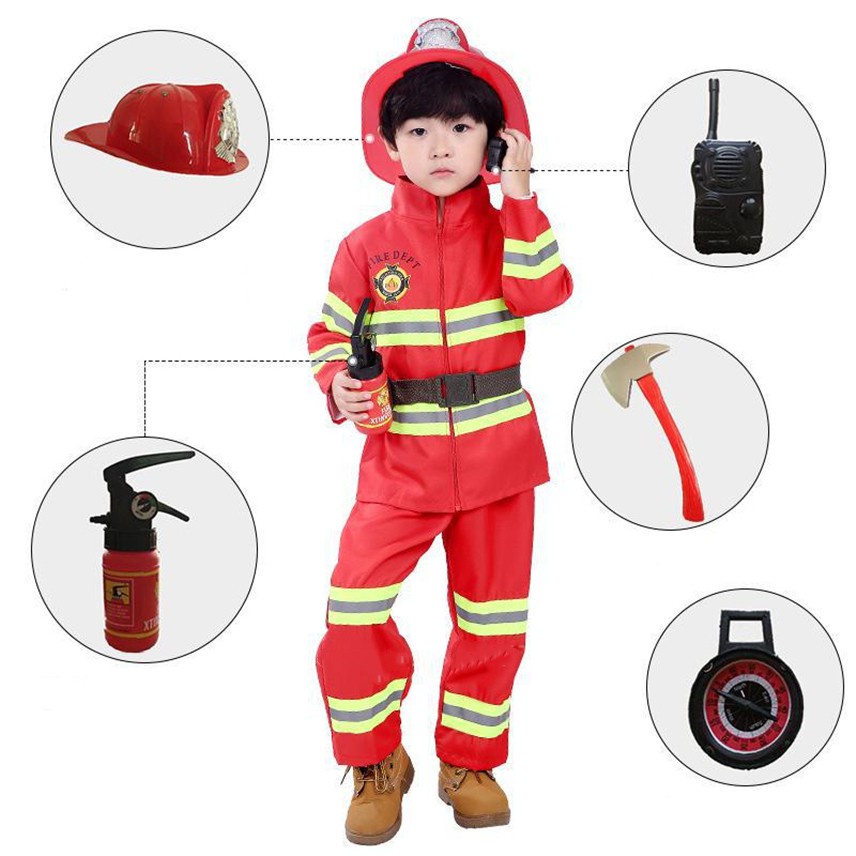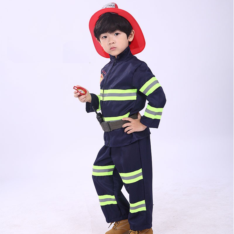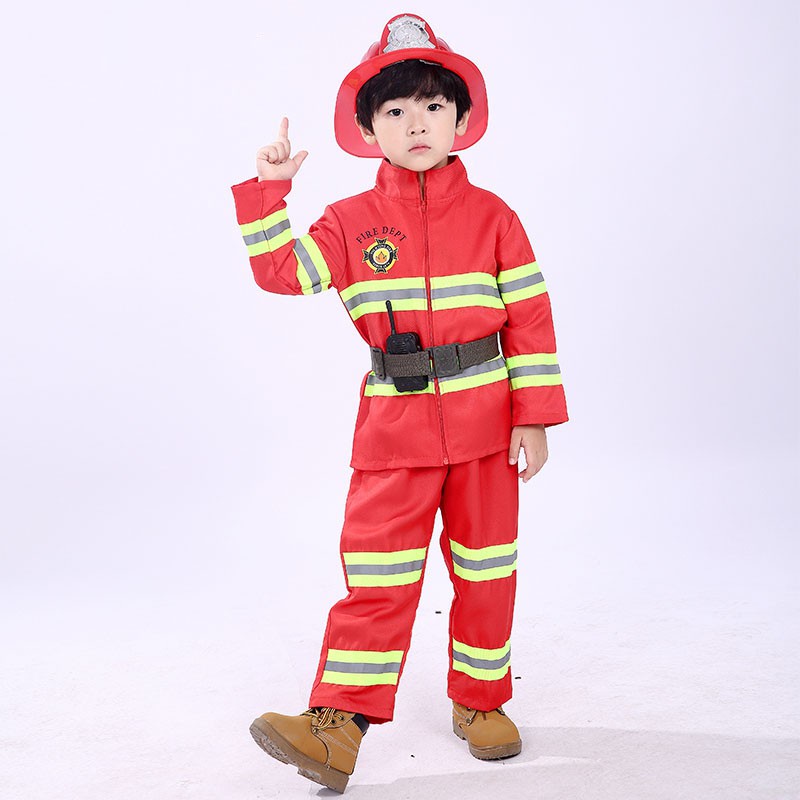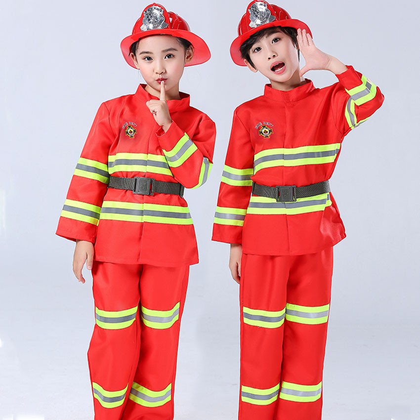 Teenager Fireman Sam Uniform Children Halloween Cosplay Firefighter Costumes Carnival Accessories Team Wear for Kid