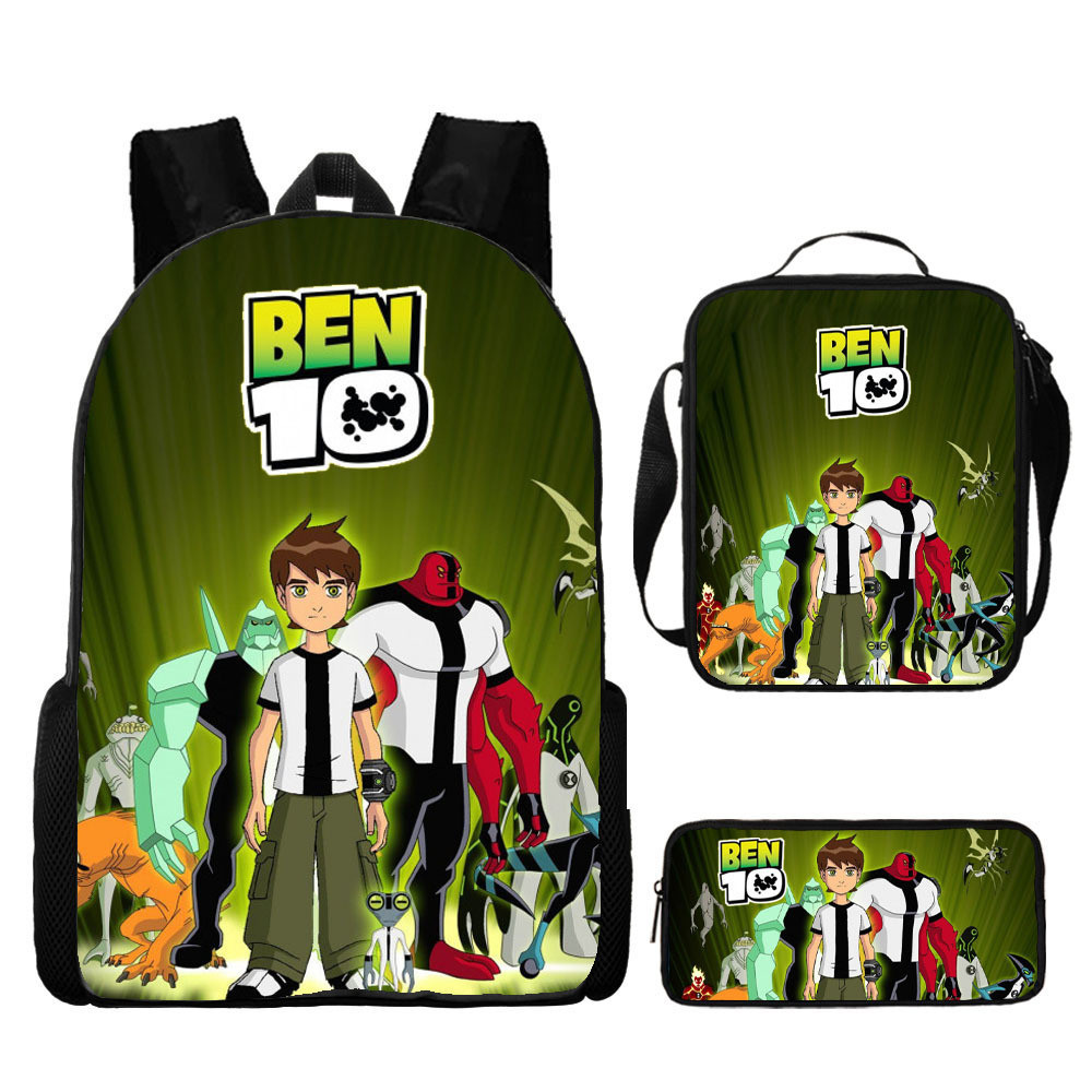 Teenager Hacker Backpack ben 10 Student School Bag Anime Cartoon Backpack Lunch Bag Shoulder Bag Pencil Case