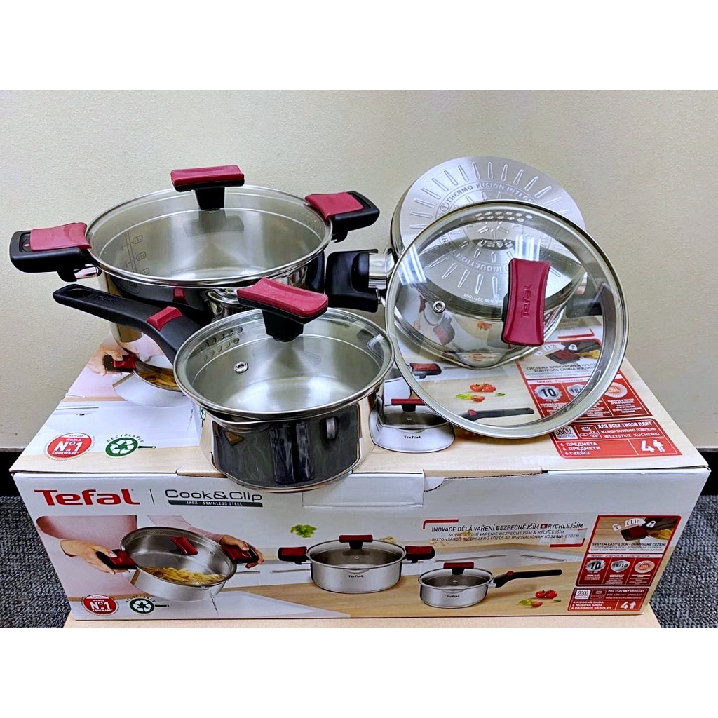 Tefal Cook & Clip 6 piece Stainless Steel Cookware Set G723S6 Induction Stewpot Saucepan Pot