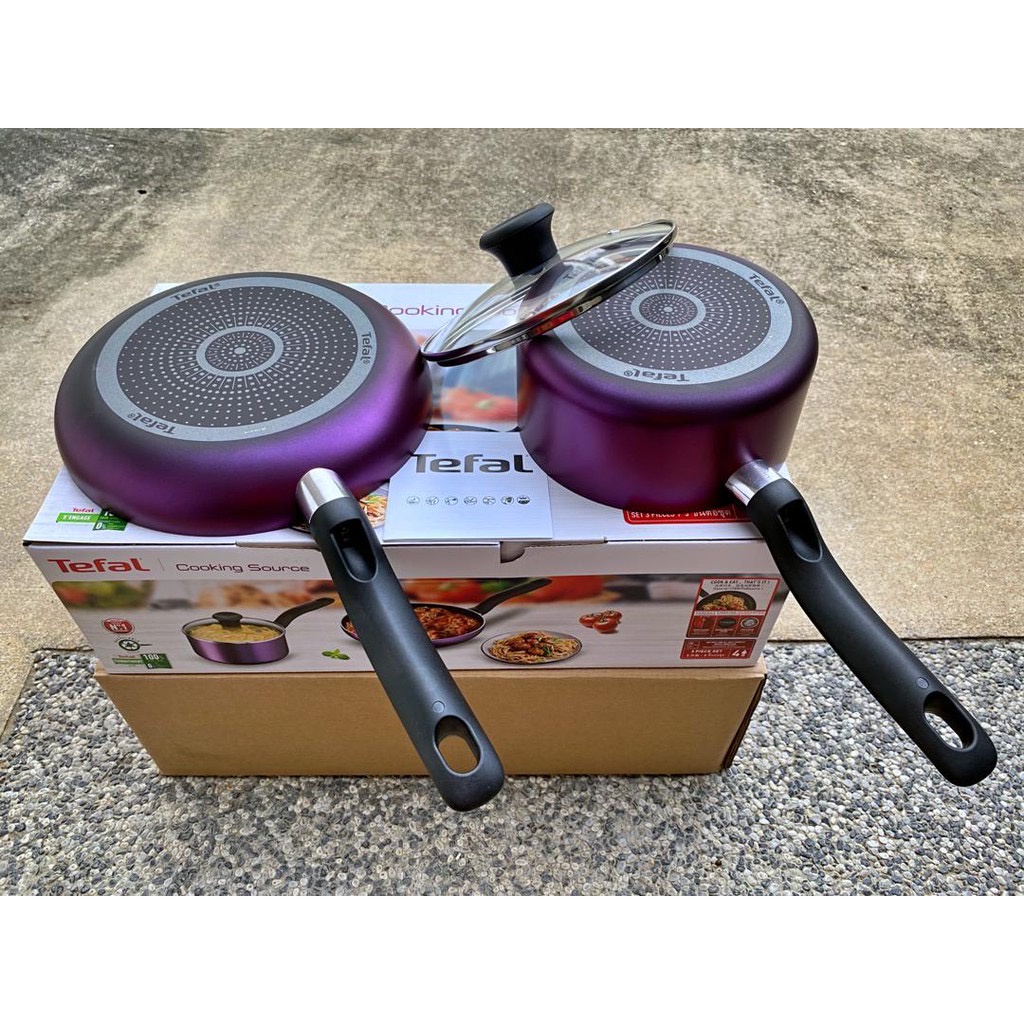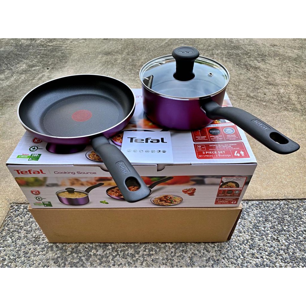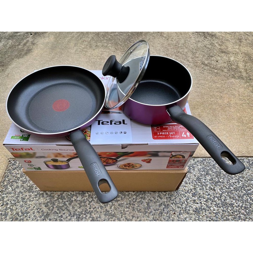 Tefal Cooking Source 3 piece Non Stick Cookware Set B504S2 Saucepan Lid Frypan
