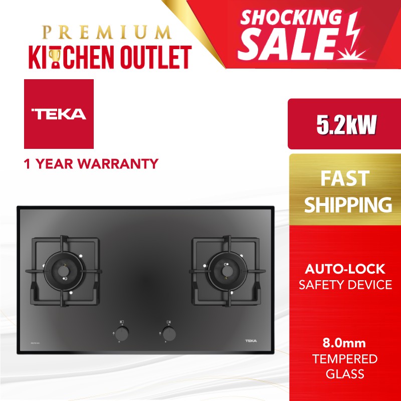 Teka 5.2kW Built-in 2 Triple Ring Brass Burners Gas Hob | Auto Lock Safety Device | Tempered Glass 8 mm | GSQ 782 AI AL