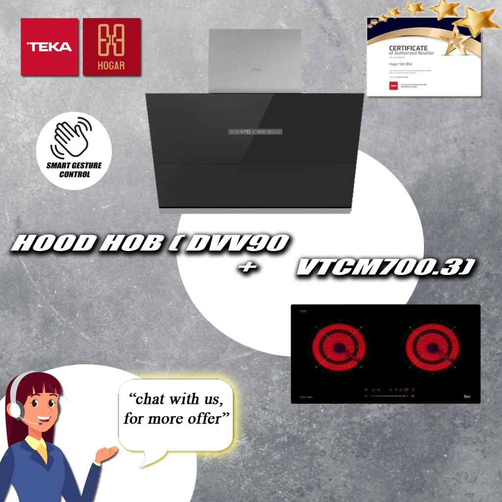 Teka Hood Hob DVV 90 + GT 78 2G | Smart Gesture Control Hood | 1600 suction | Smart Cooker Hood | Teka Package | Combo