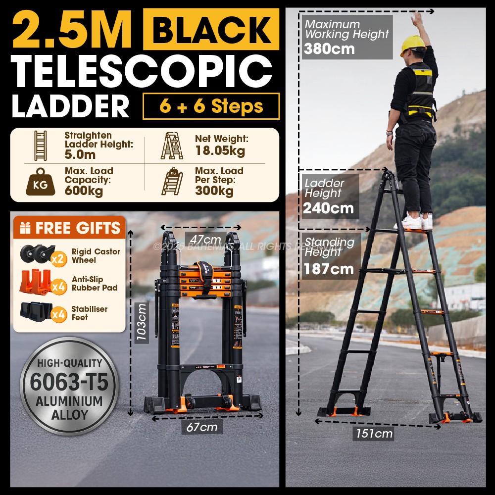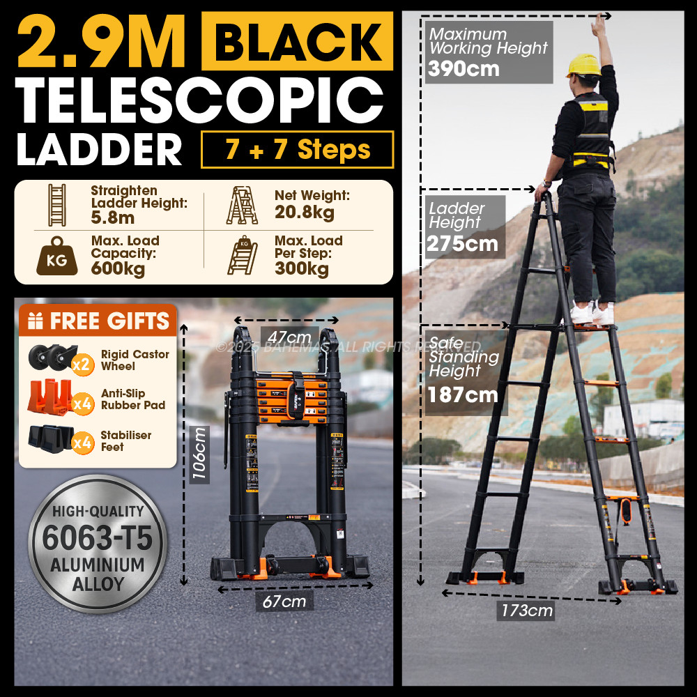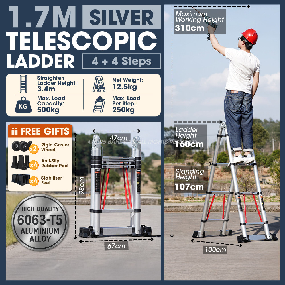 Telescopic Ladder Double Sided Heavy Duty Ladder Multipurpose Ladder Tangga Lipat Aluminium Foldable Extendable