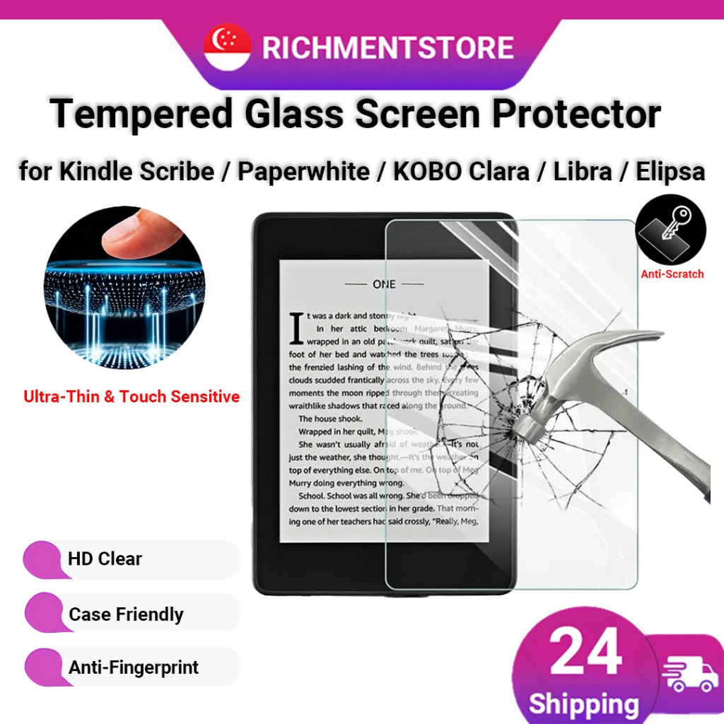Tempered Glass Screen Protector for Kindle Scribe, Paperwhite, Signature Edition, KOBO Clara 2E/BW/Colour, Libra 2 Colou
