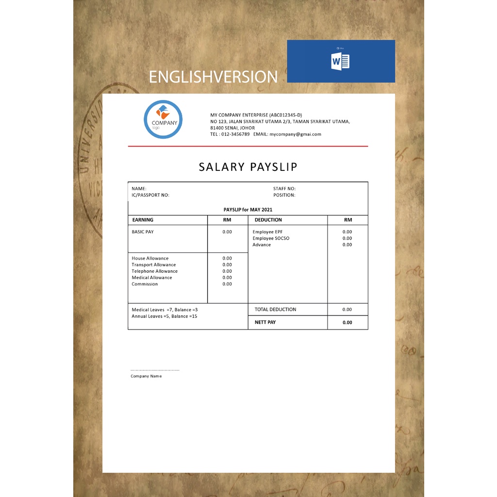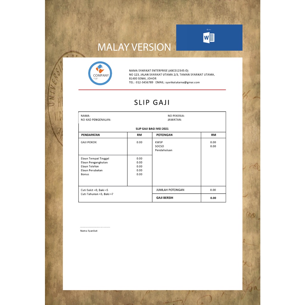 Template Slip Gaji (Malay/English Version)