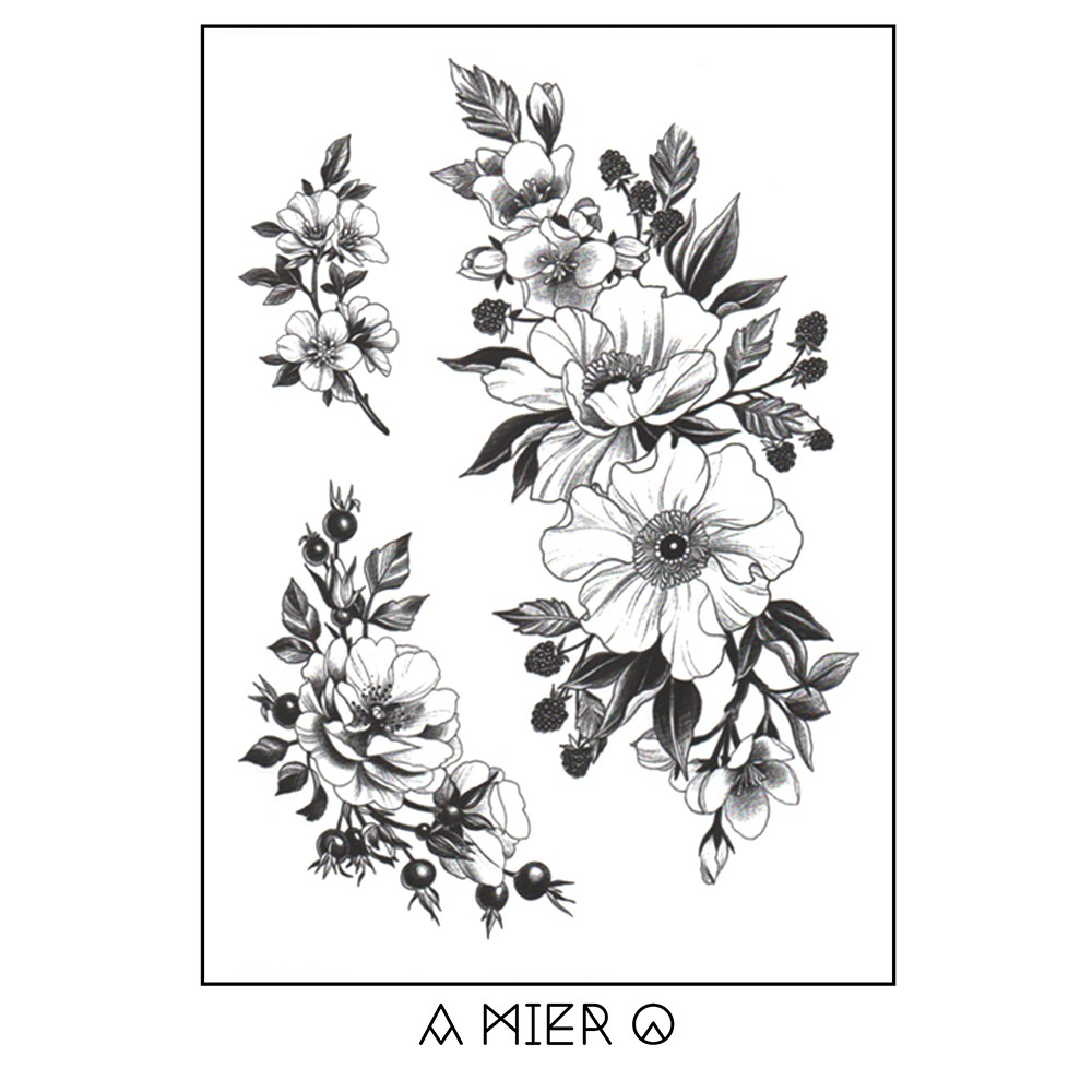 Temporary Tattoo - Black Ink Flower Tattoo (No.38)