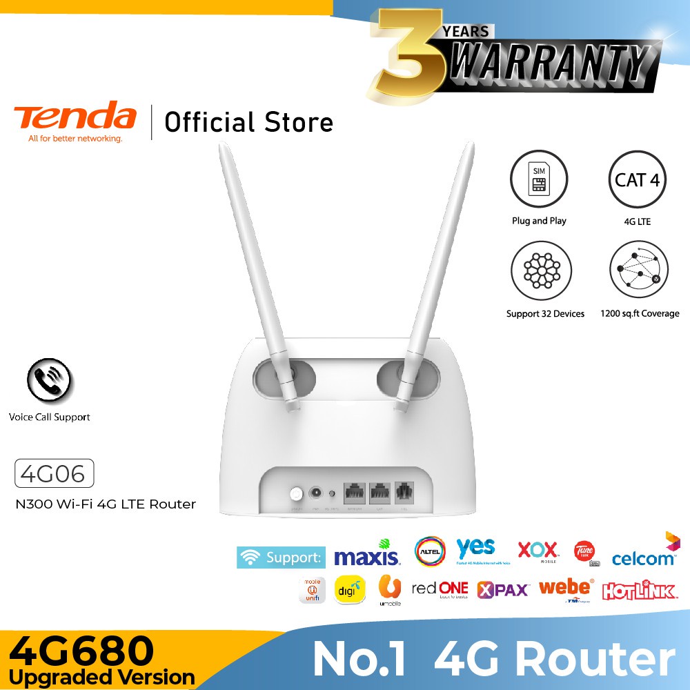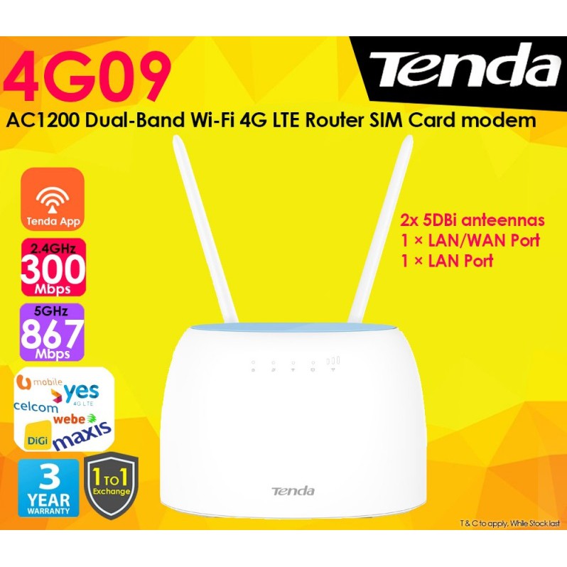 Tenda 4G06 / 4G09 / 4G680 / 4G180 / 4G185 4G MODEM ROUTER Dual-Band CAT 6 Wi-Fi 4G+ LTE - MR100 MR200 MR400 MR6400