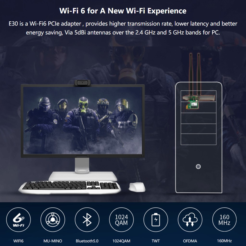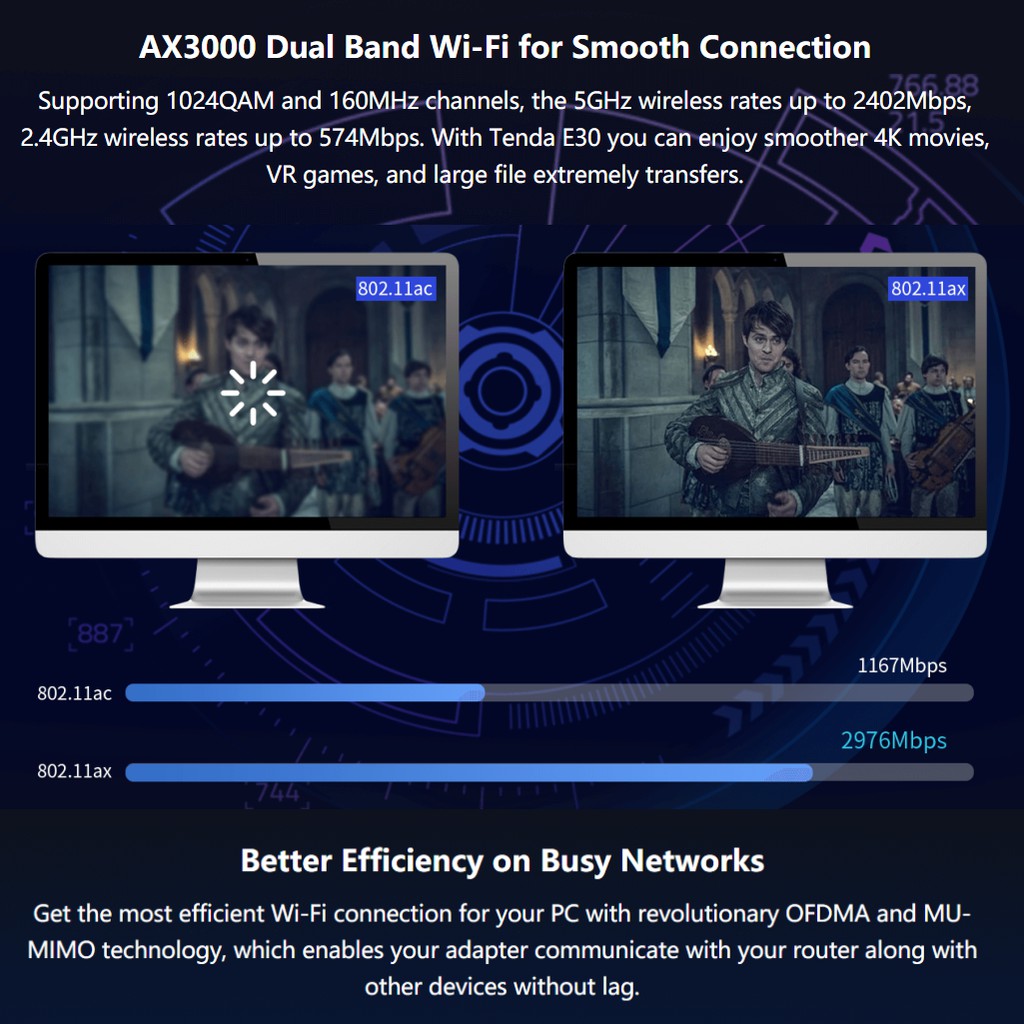 Tenda E30 AX3000 WiFi 6 MU-MIMO WPA3 PCI-E AX WiFi Adapter Card for Windows 10 Desktop
