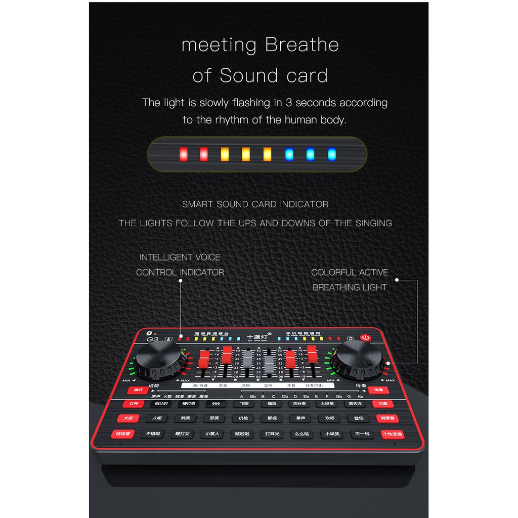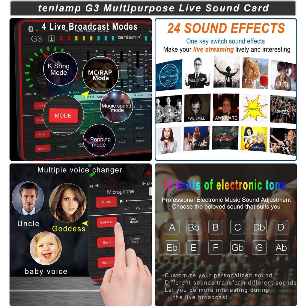Tenlamp G3 Sound Card Live Mixer Professional Live Sound Card Bluetooth Audio Live Broadcast Headset Microphone Sound Ca