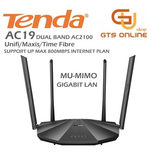 Tensda AC19 Router AC2100 Dual Band Gigabit WiFi Router Support Maxis / Unifi / Time Fibre up to 800Mbps