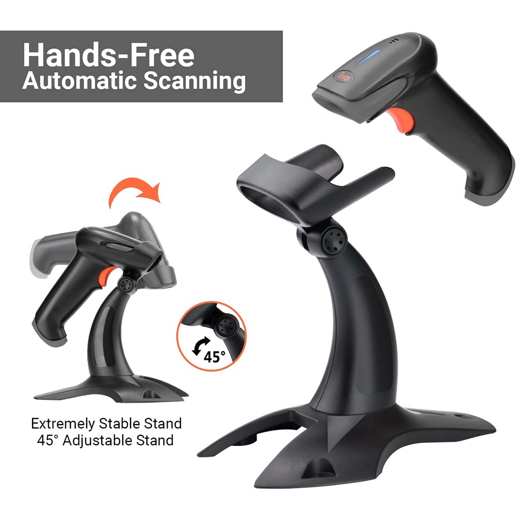 Tera Wireless 2D QR Barcode Scanner with Stand Bluetooth Barcode Reader with Vibration Alert Scanner Barcode HW0002 Grey
