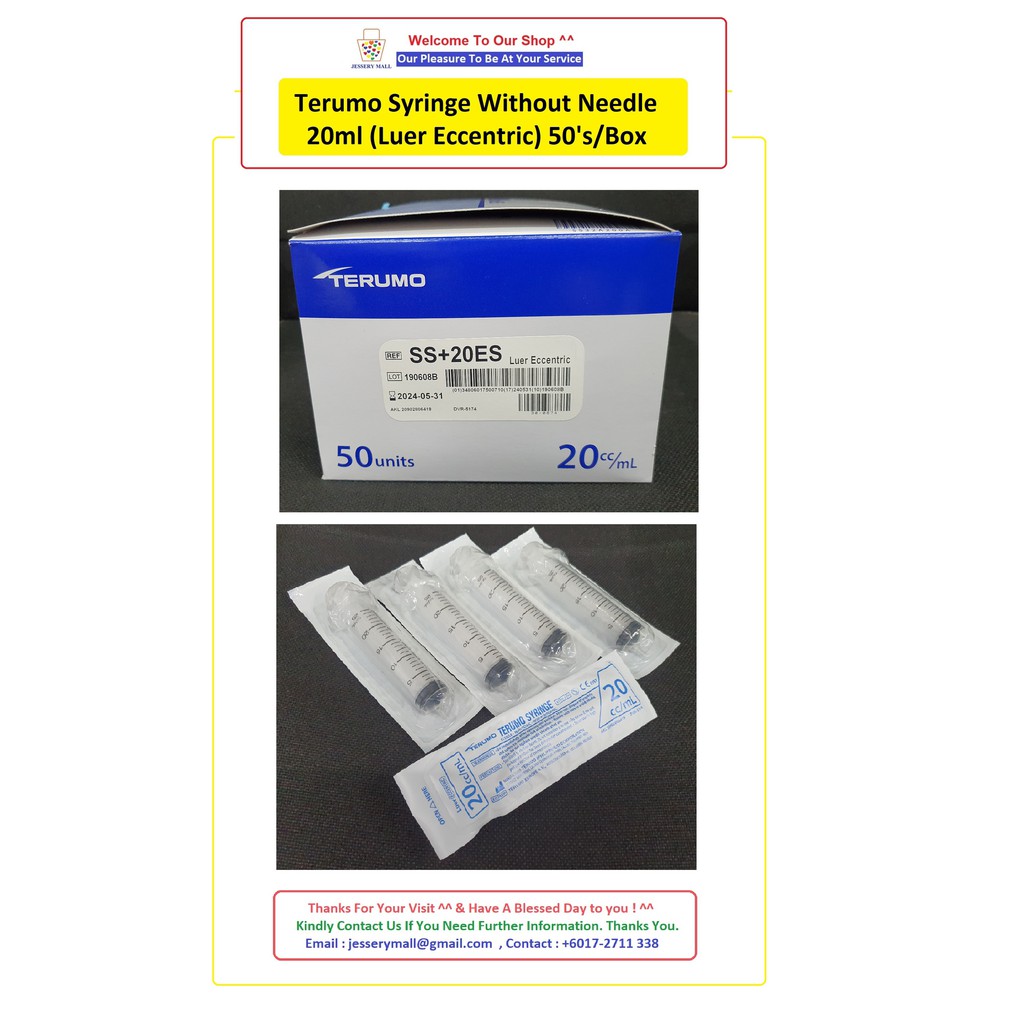 Terumo Syringe Without Needle 20ml (Luer Eccentric) , Packing: 50pcs/box