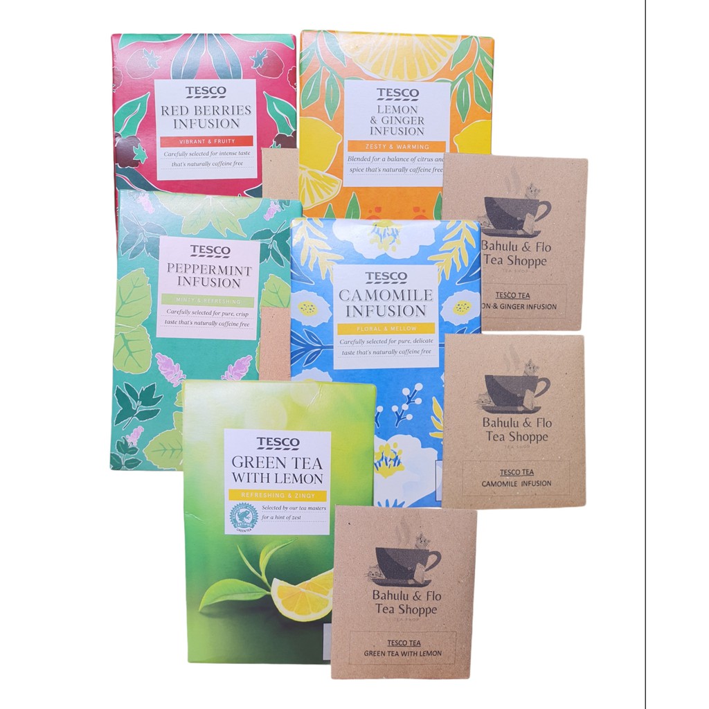Tesco Tea- Teh-Red Berries, Lemon & Ginger, Camomile, Peppermint, Green Tea-Loose Pack(1 tea bag sachet)