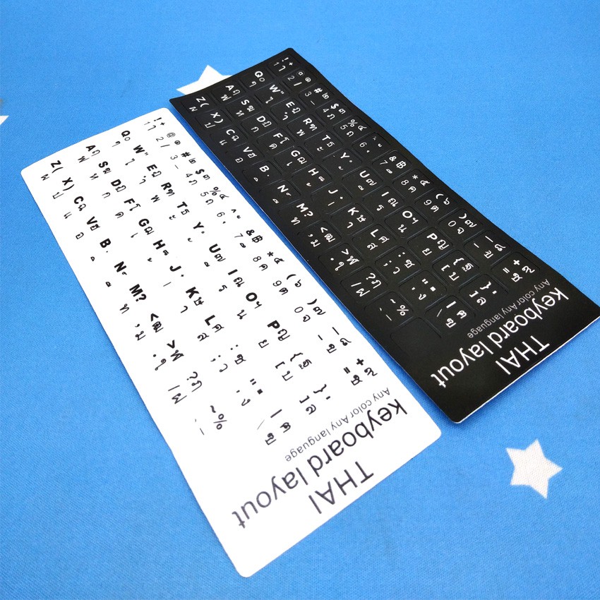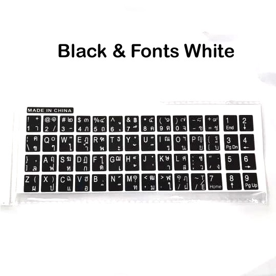 Thai Sticker For PC / Laptop Keyboard Color Black & Fonts White / Color White & Fonts Black