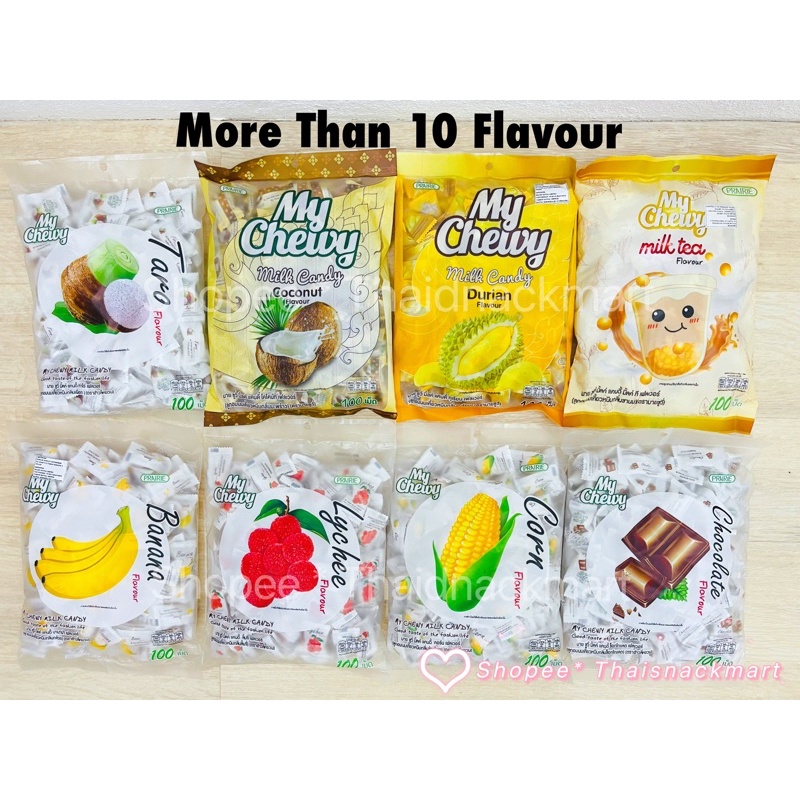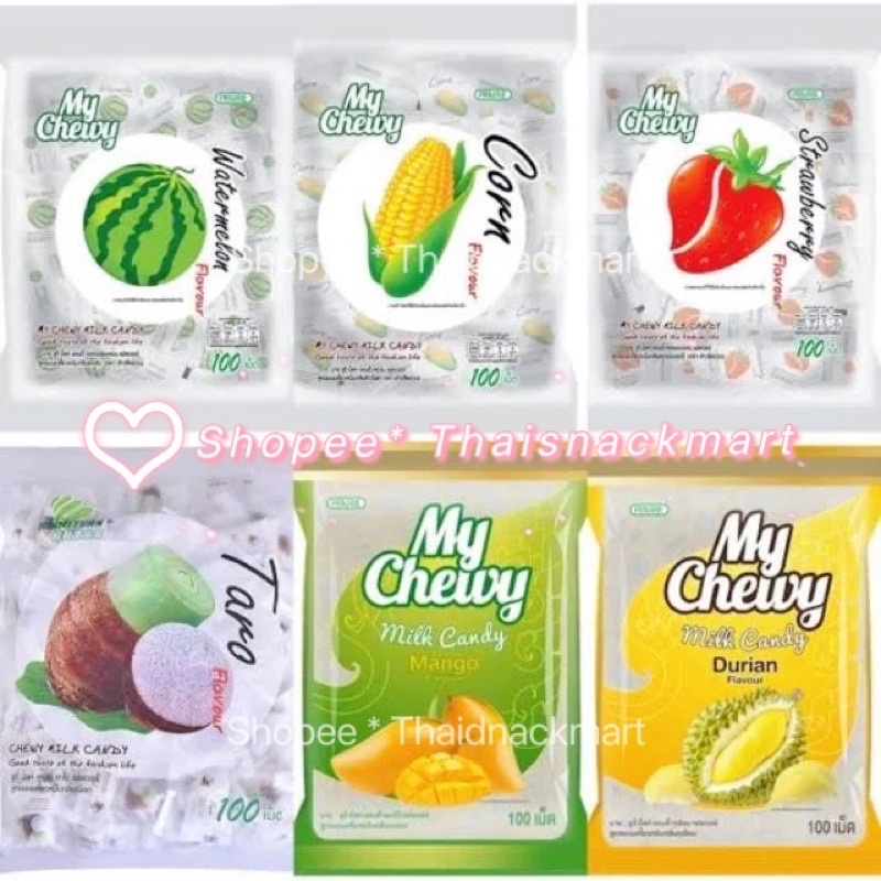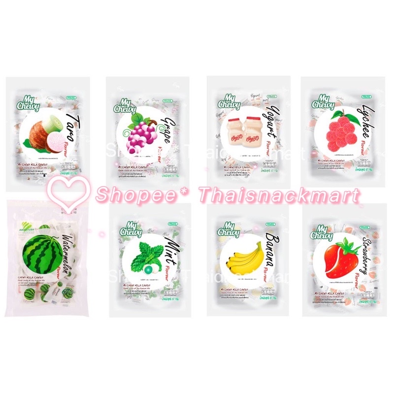 Thailand My Chewy 67g~360g 100pcs Taro Strawberry Banana chocolate Watermelon 泰国夹心软糖