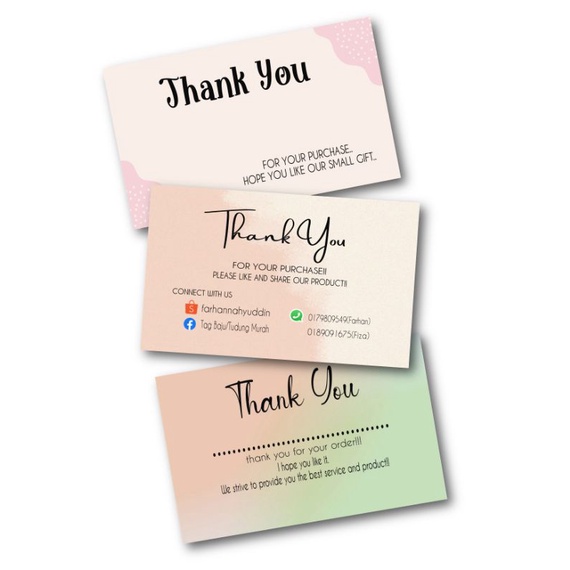 Thank You Card Custom Kad Terima Kasih Custom (100pcs)