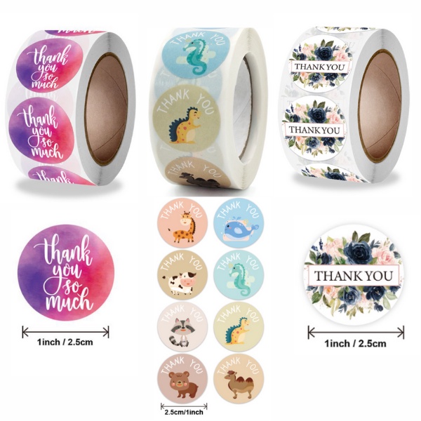 Thank You Sticker 25mm [50pcs or 500pcs] | Cartoon Label | Cute Label | Stiker Terima Kasih | Seal Label | Door Gift