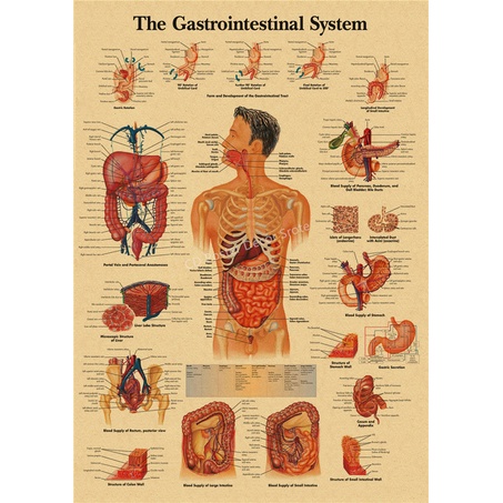 The Body Structure Retro Poster Anatomy and Physiology Kraft Paper Skeleton Posters Home Medical Room Decor Art Wall Painting